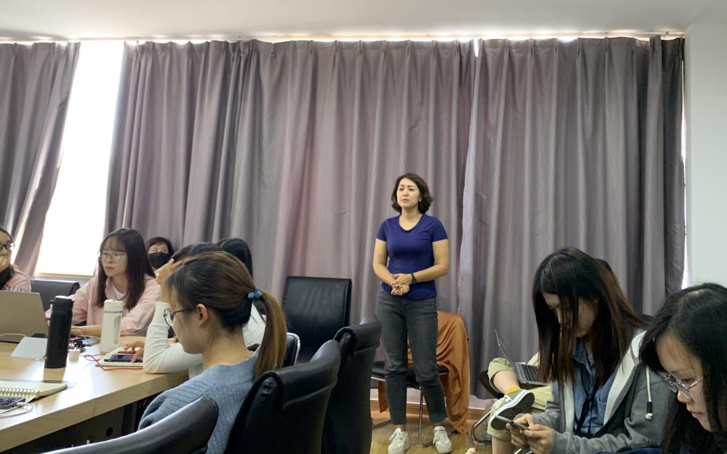 交流环节显得非常热烈,钟老师就问题一一进行了解答。其中薛红老师提出,上海部分外祖父母会因为心疼和体谅独生女,而为其承担起照顾孩子的主要责任现象,与钟老师研究中的广州家庭案例存在一定差异。来自新疆的同学引出的新疆二孩、三孩普遍化的现象,引发了热烈的讨论。在讲座中,钟老师的讲解和举例都生动易懂,现场气氛非常轻松。