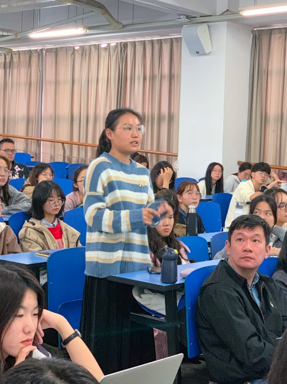 主题讲座之后,是本次讲座的交流提问环节。在场同学分别就数据收集方法、研究对象选择、犯罪学学习等方面进行提问,徐建华老师也对此一一作答,现场气氛十分活跃。谈及研究中常面临的如何解决犯罪问题的疑惑,徐建华老师说道,在社会学与犯罪学研究中,去分析我们看到的社会现象的背后原因,通过另外一个社会事实去解释这一社会事实更为重要。