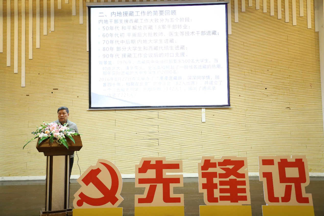 随后,三位不同年代的“教育者”分别讲述了他们的初心故事。王大犇老师为大家讲述了自己与西藏教育的故事。王老师扎根西藏十几年,见证了西藏教育的事业发展。当年作为一名大学生支援西藏,他克服了条件上的艰苦,始终坚守共产党员信念,发扬了特别能吃苦、特别能忍耐、特别能战斗、特别地团结、特别能奉献的“老西藏精神”。