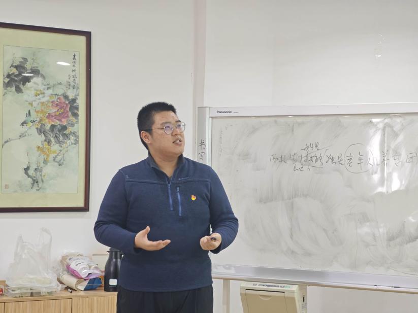 最后,黄超老师提出,应将红色经典研读活动建设成为全院党史学习教育的坚强堡垒,用知识社会学方法研究党史文献。他还强调,学习党史要深刻领悟其中蕴含的辩证思想,倡导全体党员在实践中体悟和运用这种智慧,将理论学习成果转化为推动支部发展的强大动力,使党支部真正成为锤炼党性、提升理论、服务成长的理想阵地。