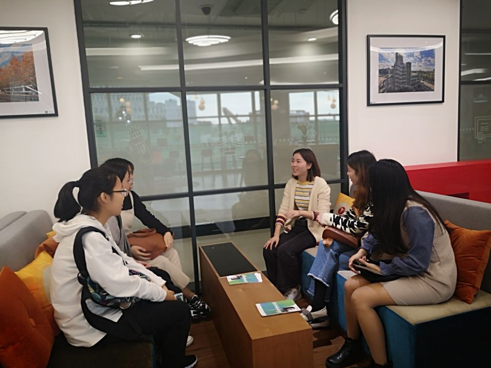 来到幸福五号,我们一行人受到了负责人益老师的亲切接待。她向我们仔细介绍了机构的具体情况。幸福五号把“培养向善的土壤,构建快乐、幸福园区,成为让幸福发生的地方”作为使命和愿景,举办了丰富多样的公益活动,也为上海紫竹国家高新技术产业开发区提供了公益平台。这里有游戏区、水吧、小型会议厅、演讲舞台、幸福图书馆五个区域,为紫竹国家高新技术产业开发区白领们提供午间休息、娱乐休闲地点,也定期举办小型演讲活动、提供场地租赁等等。