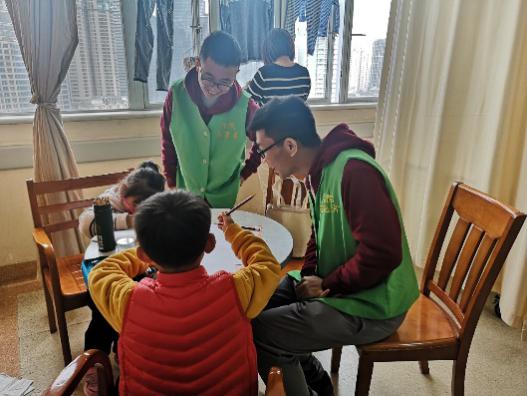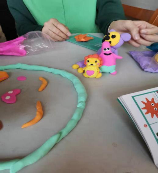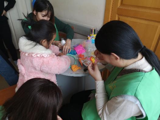 本次实践活动,7名同学们一共分为3组,每组2-3人,进入三个病房开展探访服务。九院社工部为同学们准备了丰富多元的材料,有彩纸、画笔、黏土等。不同组别的同学通过带领小患儿一起绘画、折纸、捏黏土的方式与孩子们家长进行互动交流,每一个病房都相处的很愉快。绘画组的两个男生在陪伴小朋友绘画的过程中建立了深刻的友谊;折纸的宝勒同学心灵手巧,送给了小朋友一颗十分精致的爱心,这颗爱心也寄托了宝勒同学对小朋友的关爱;进行黏土手工的同学们则跟小朋友们一起发动奇思妙想,用双手创造出了一个又一个栩栩如生的小动物,有派大星、小熊、小狮子等等。
