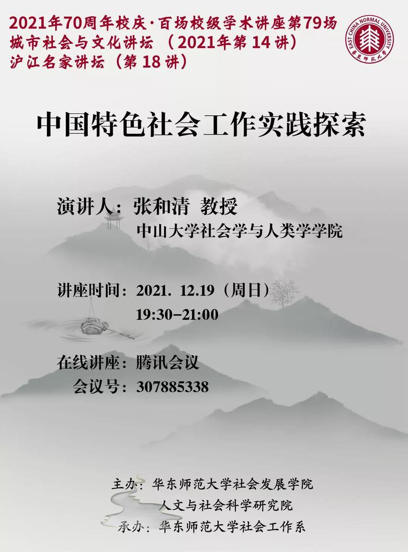 社会工作系打造的、以传播社会工作专业发展的最新动态和权威成果为主旨的系列精品讲座,拟不定期开展主题讲座、研讨沙龙等学术和实务交流活动。借助这个平台汇聚社工精英、分享最新动态,以期达到“连接·赋能·共创”、充分体现社会工作价值理念的学习和交流效果,为推动社会工作专业教育、学术研讨和行业交流尽一份力!