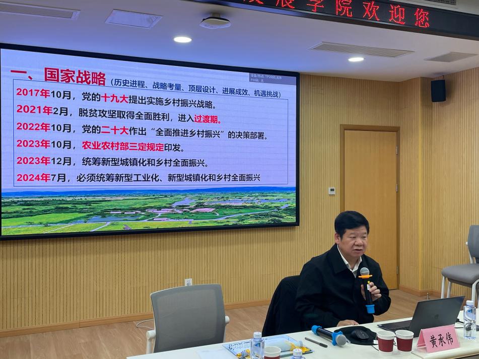 2024年12月9日下午,中国乡村振兴发展中心黄承伟主任应邀为我院作题为《中国乡村全面振兴论纲》的学术讲座。此次讲座由中国社会工作教育协会副会长向德平教授主持,四十余名师生参与学习。