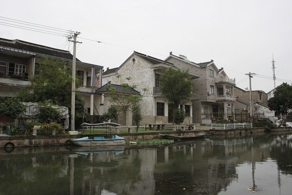 为了让大家对开弦弓村有更全面的认识,姚老一开始就带领同学们寻着“费孝通足迹”,穿过“江村文化弄堂”,沿着贯穿开弦弓村的“小清河”(因河流像一张弓、村子像一支箭而得村名“开弦弓”)参观了整个村庄。河岸新旧居民房相依相对、河上垃圾船摇摇荡荡、河边村民摘毛豆洗衣服日常生活。一派秋日村落娴静景致。姚老边走边给我们介绍了开弦弓村的历史和近况,理论与现场相结合,异常生动。经此,学生们对村子里的人口结构(特别是老龄化问题)、经济发展状况等问题都有了初步的认识。