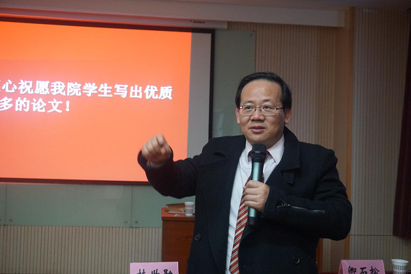 会议下半场桂世勋教授的报告主要围绕研究生写好论文的几点建议展开。作为在博士论文指导方面有着丰富经验的教授,他首先提出学生在撰写论文的时候,应明确和聚焦自己撰写论文的原始创新点,至于获取创新点的途径,桂老师提出以下几种方式,即可以通过征求中老年教师特别是论文指导老师的点拨和建议、从中央及当地政府颁发的重要文件中发现现阶段迫切需要探索的新举措、从参加专业学术会议和学习文献中获得等。接着,他通过自己指导研究生的实际经历向我们强调,要善于从参与导师主持课题中发现可进一步扩展和系统研究的问题;构思论文的主要内容时要注意发挥自己的专业优势和获得主要基础资料的可能性。最后,桂老师还给出了学生要写好论文需要注意的其他几点建议,如在题目上最好“小题大作”,论述内容应“求新、求实、求深”,并引用毛泽东的名言“伤其十指,不如断其一指”以强调论文写作切忌面面俱到,避免“黄金掩埋在黄沙”中,还强调了写好学术论文所必备的一些理论修养和实践修养。