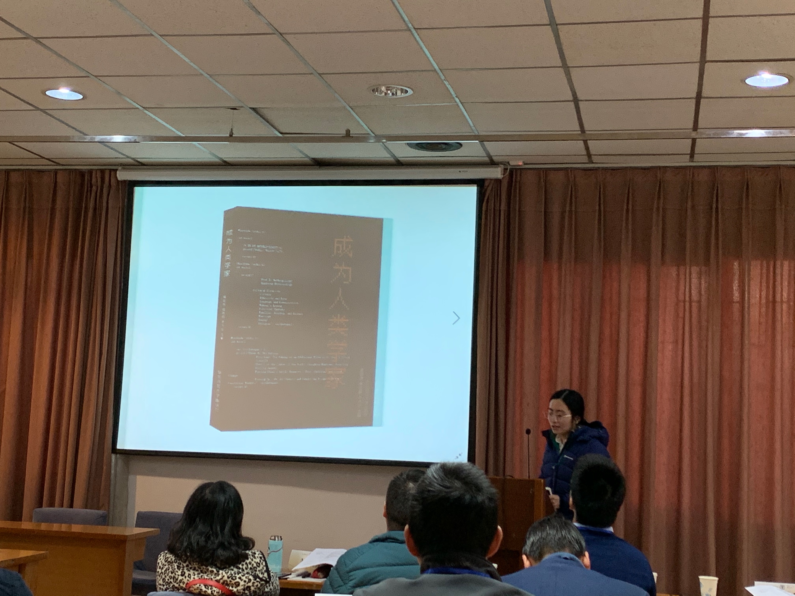 出版社的顾晓清老师向各位与会人员简要介绍即将出版的《成为人类学家》一书,并介绍了以社会学、人类学研究为特点的“薄荷实验”丛书。