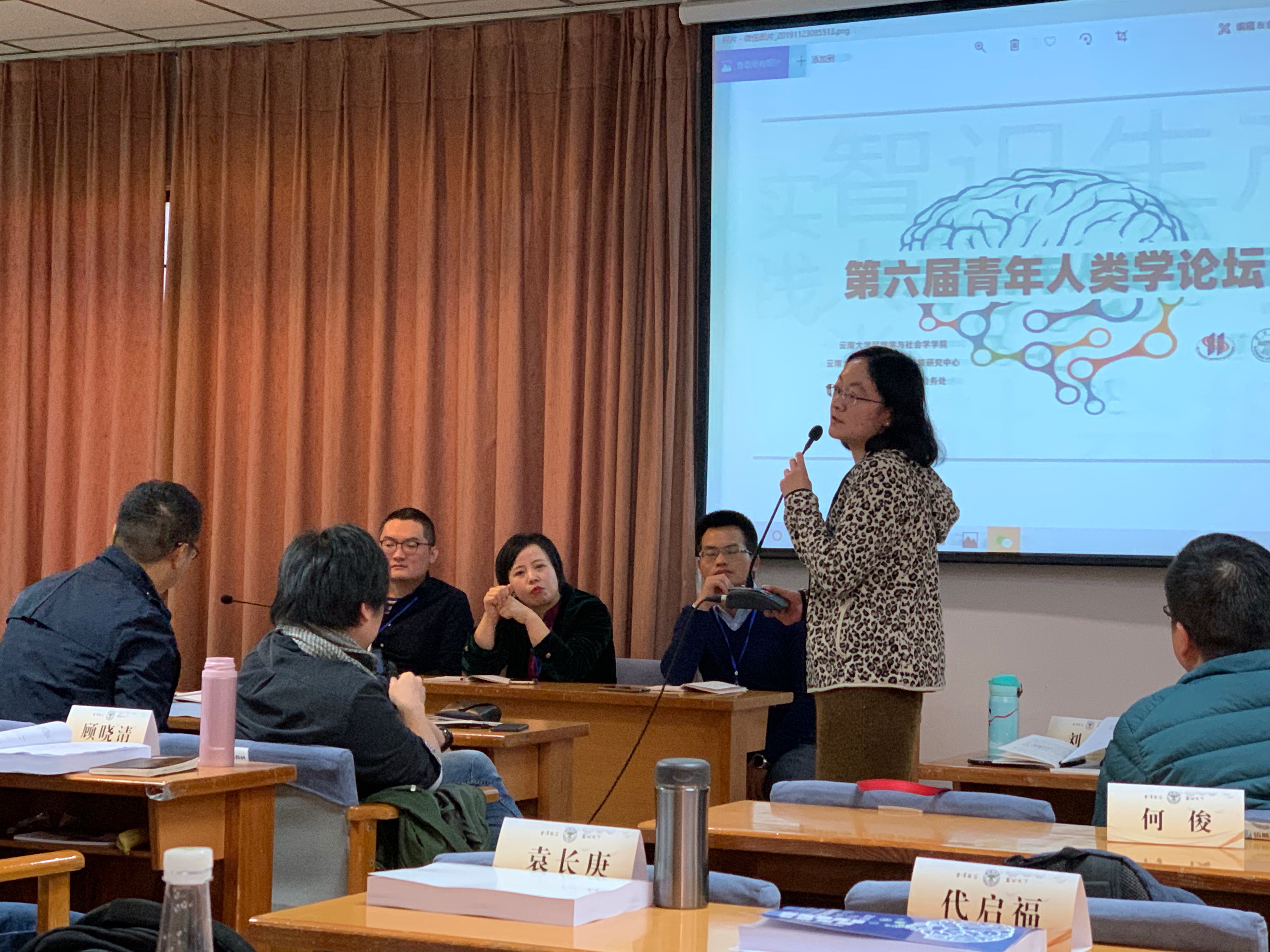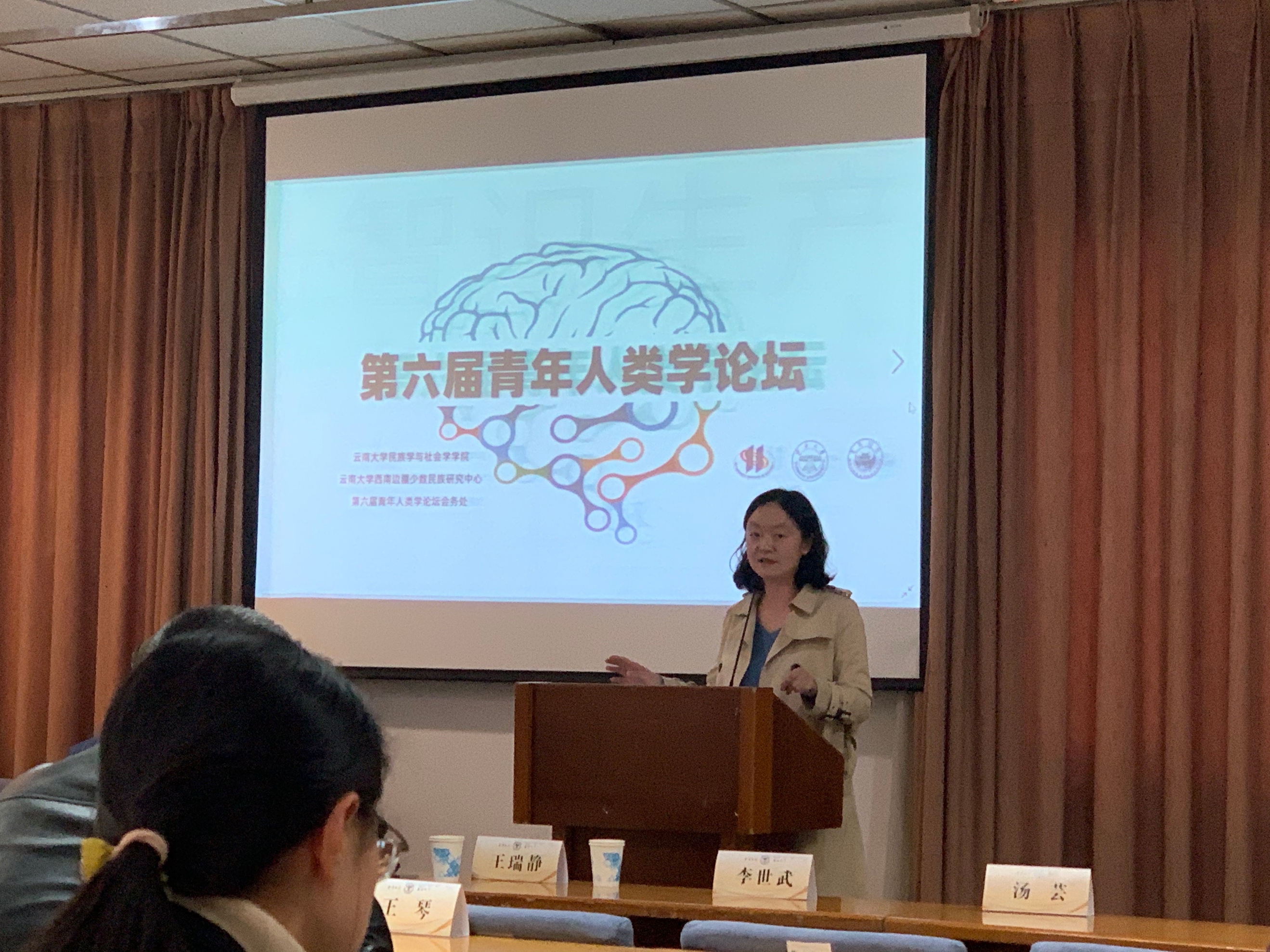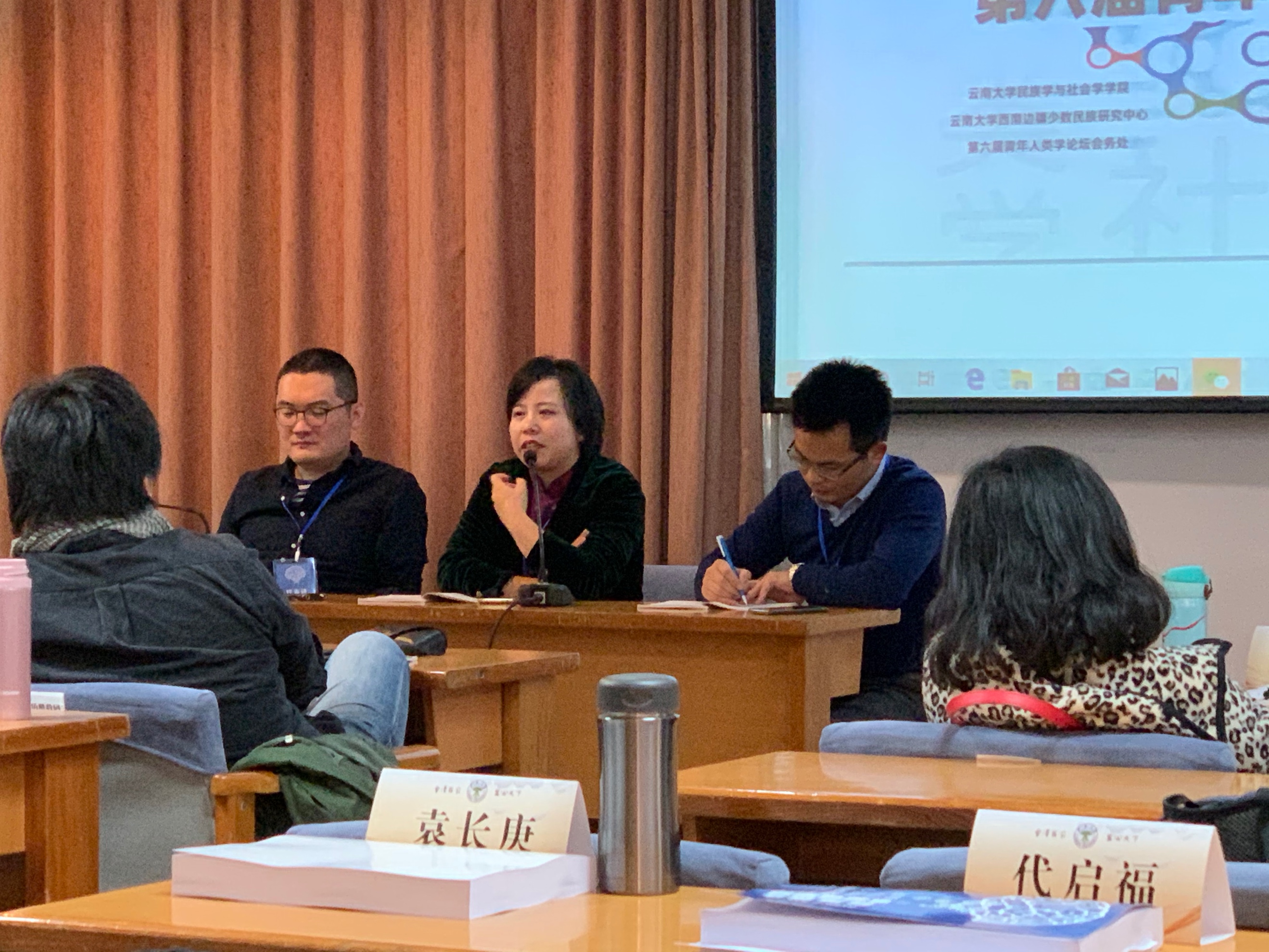 黄剑波教授、中央民族大学龚浩群教授、云南大学李伟华博士。我院人类学研究所师生积极与会,黄剑波、刘琪、张晖、朱宇晶四位老师及博士生姚畅一起前往昆明,与来自世界各地的人类学者展开学术交流。