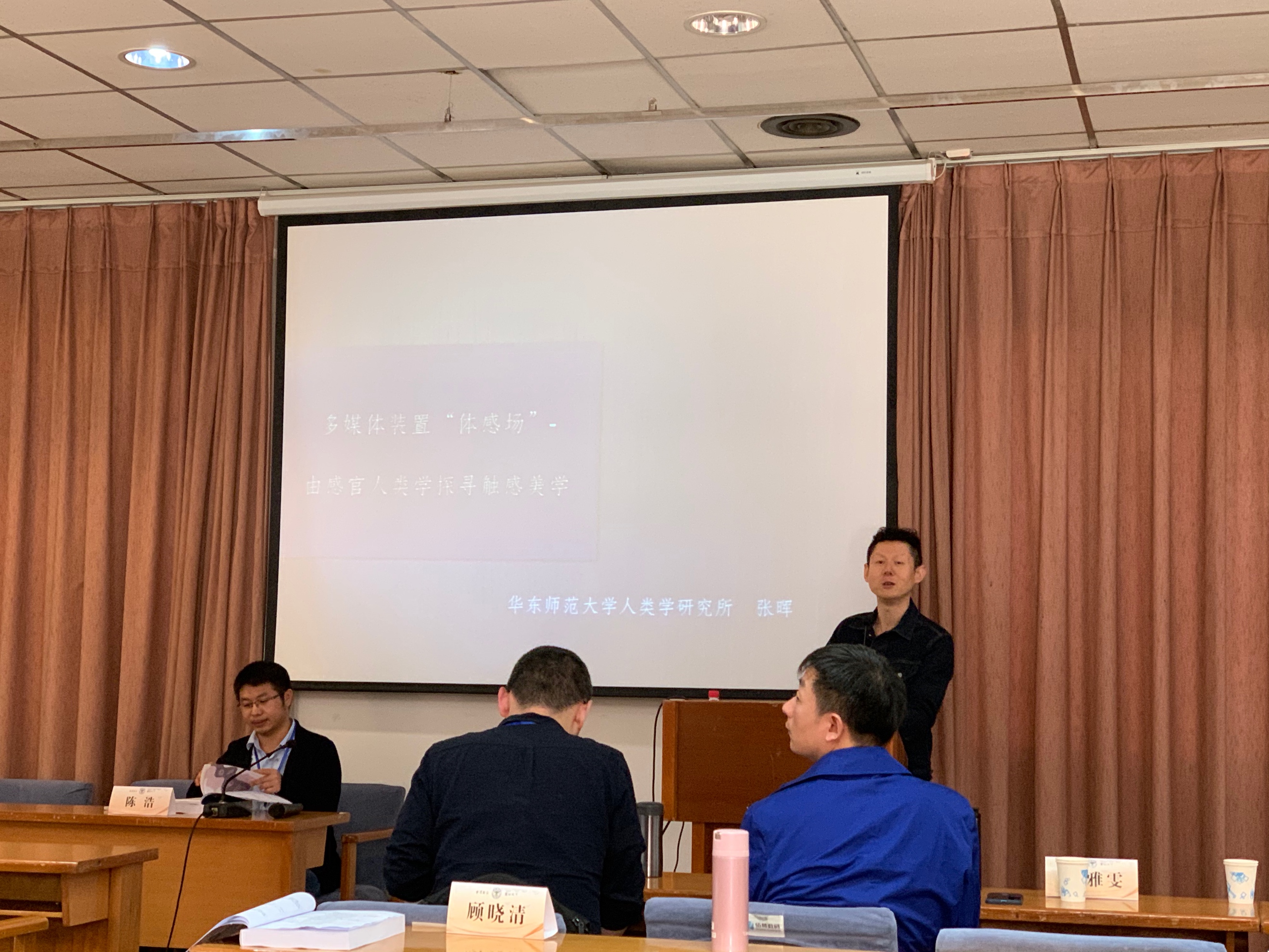 人类学所张晖老师在新媒体与技术研究的分论上进行了题为“多媒体装置‘体感场’——用感官人类学营造新审美向度”的发言。