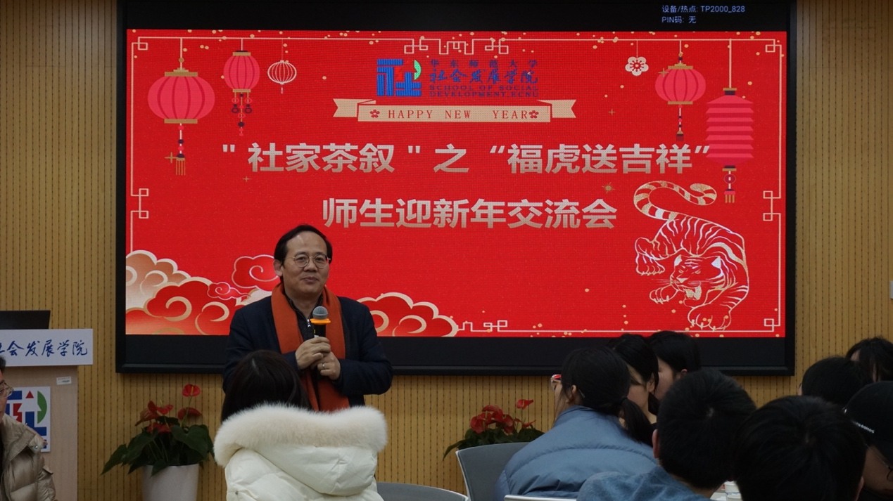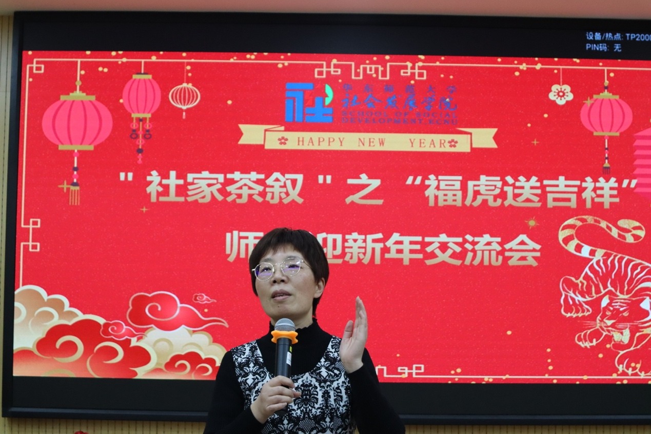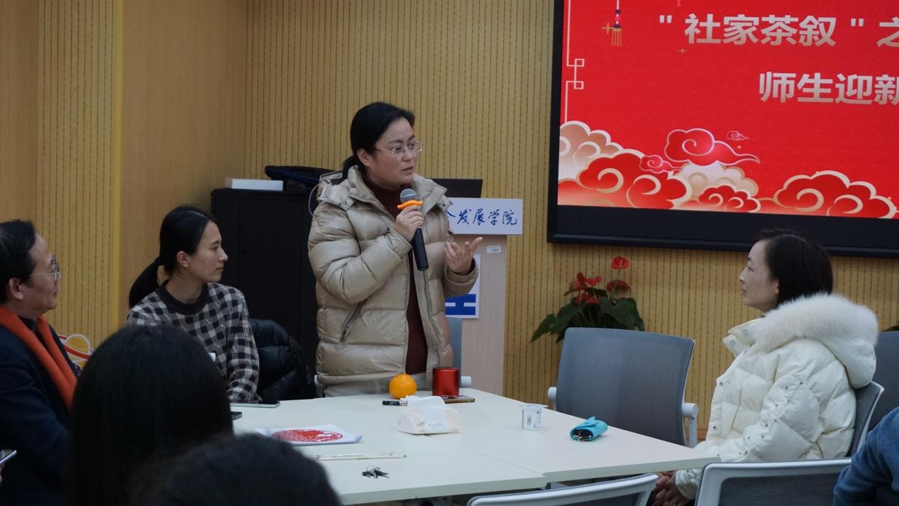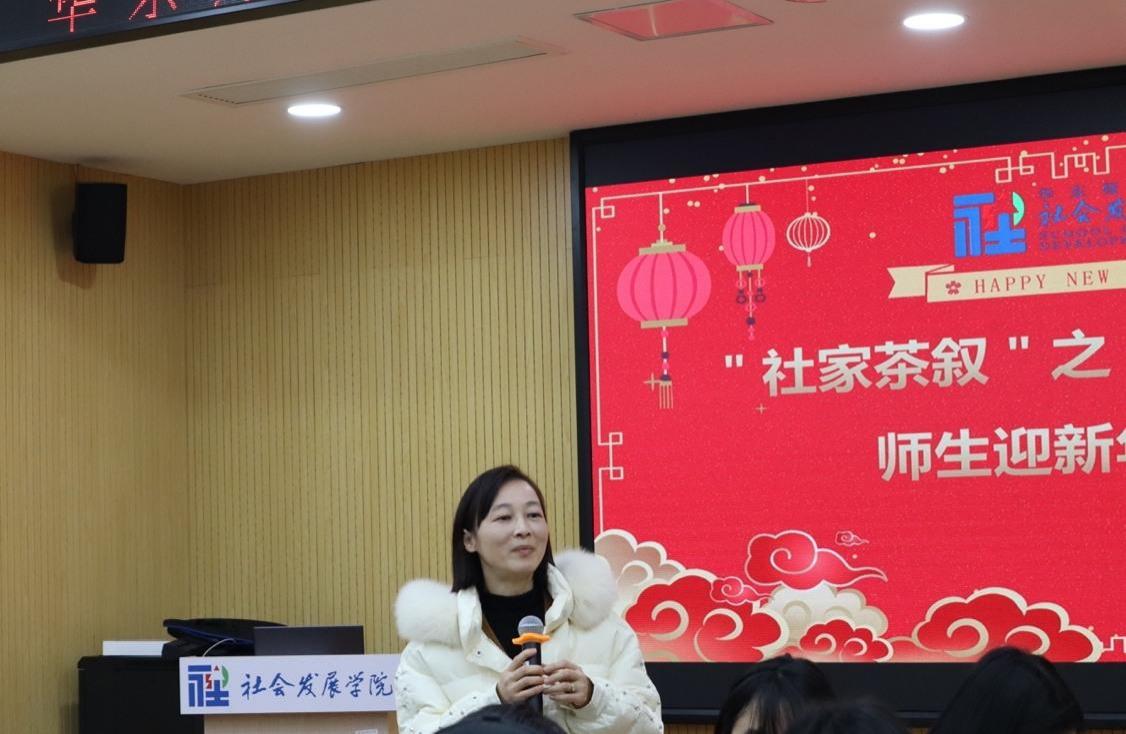 党委副书记兼副院长黄燕的主持下正式开始。黄燕老师对各位同学和老师表达了新年的祝福,并强调“社家茶叙”作为我院师生的重要交流平台,希望在新的一年进一步加强我院师生之间的凝聚力。