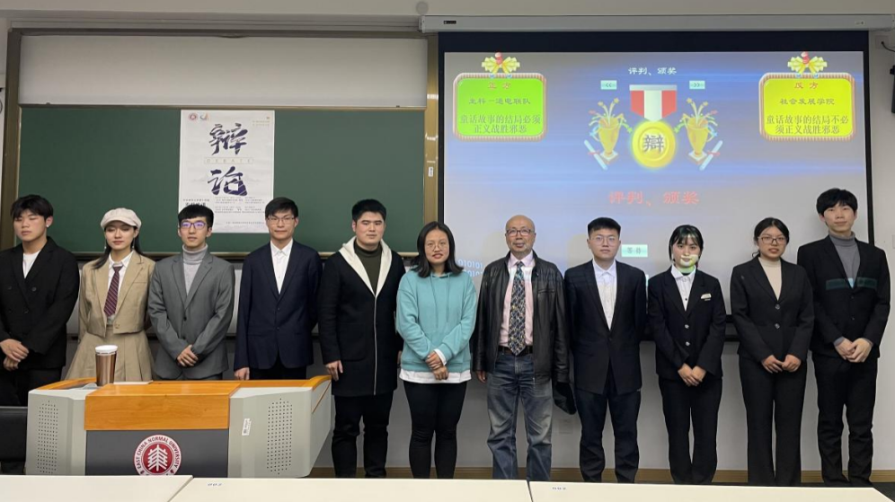 杨嘉浩、王梦圆、侯洁莹、陈益豪四位辩手勇担重任,直面生科——通电联队。本次辩题围绕“童话故事的结局是否必须是正义战胜邪恶”展开,我院为反方,认为童话故事的结局不必须正义战胜邪恶。
