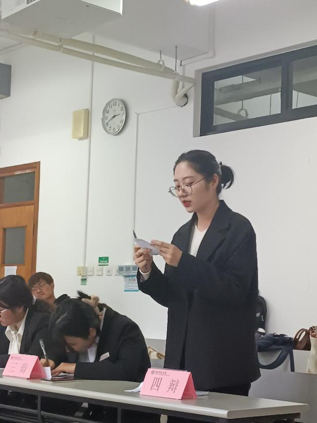 邵迪迪、王梦圆、侯洁莹和李韵四位辩手组成了我院辩论队,迎战生命科学学院-马克思主义学院-地理科学学院联队。本次辩论赛围绕“人生之喜在于不可重来”还是“人生之悲在于不可重来”展开,我院作为反方持“人生之悲在于不可重来”的论点。