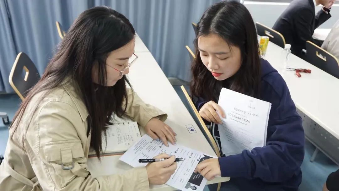 分享结束后,与会的同学们也带上个人的纸质版简历,请王谦卓老师和蔡媛老师提供修改的意见。