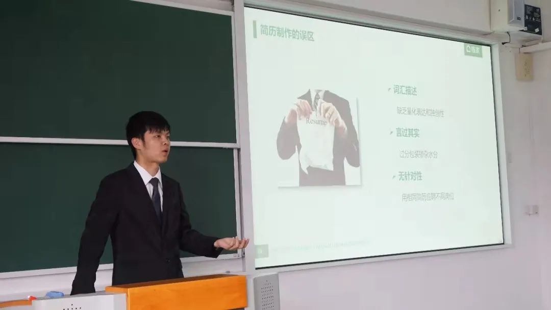 分享会伊始,王谦卓老师以面试视频的形式引入了本次分享会的第一个话题——人岗匹配。王谦卓老师分享到求职学生在求职之前要认识自己,通过亲友沟通、老师交流、专业心理测评等方法了解自己的长处、短处、兴趣、就业倾向和人生目标;其次要了解岗位,即岗位的特征、现状、业务、禁漫天堂等。基于上述基础制作的简历将更有可能获取面试机会、更大限度地实现人岗匹配。