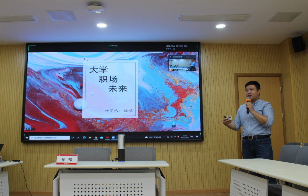 徐超学长现任中国供销粮油公司综合部副部长,他从大学、职场、未来三个方面进行了分享。关于大学生活,徐超学长提醒大家要打下扎实的专业基础,确定合适的求职目标,形成科学的时间规划,多与老师交流,多交朋友。关于职场,学长结合自身经历,建议大家理性求职,注重平台、岗位、信息、氛围,进入职场后要不断地学习,保持谦虚的态度、稳定的心态、合作的意识,并且注重细节的把控。最后,关于未来,学长送出两句寄语勉励大家,“机会永远只留给有准备的人”,“做对的事、做难的事、做需要时间积累的事”,鼓励大家放平心态、慢慢成长,积累成为行业的专家。