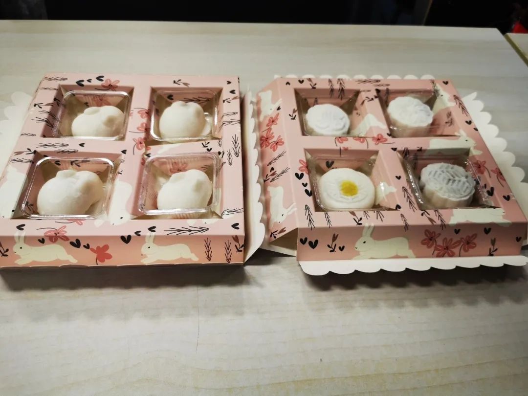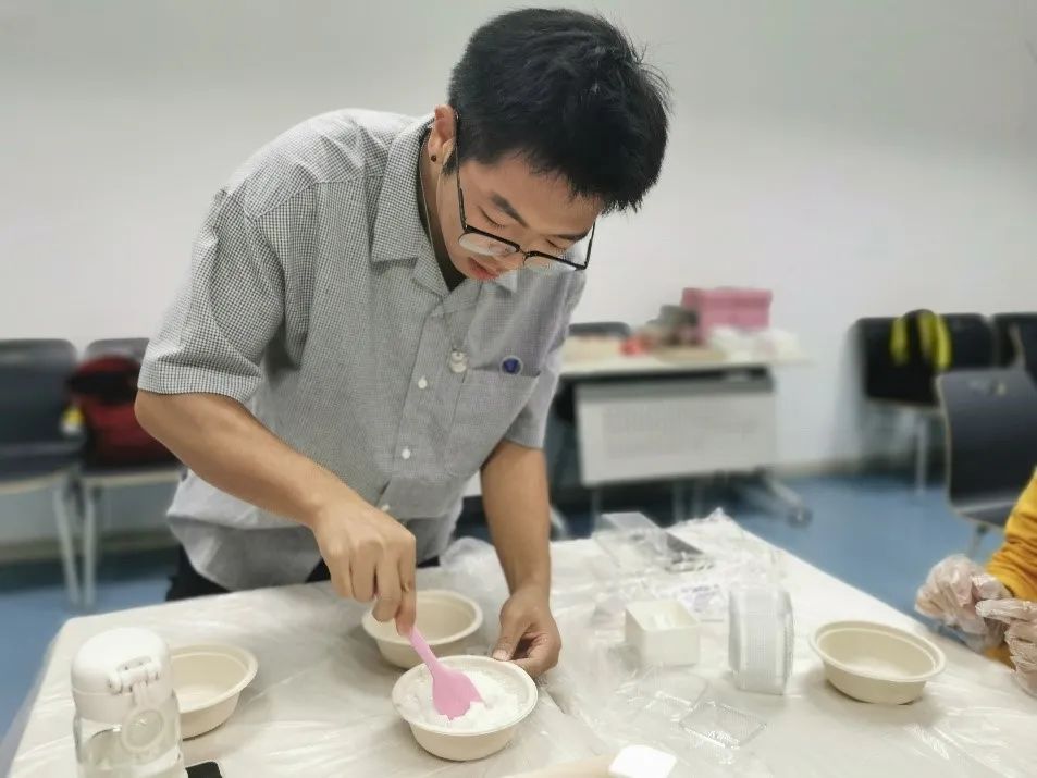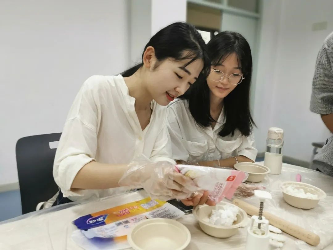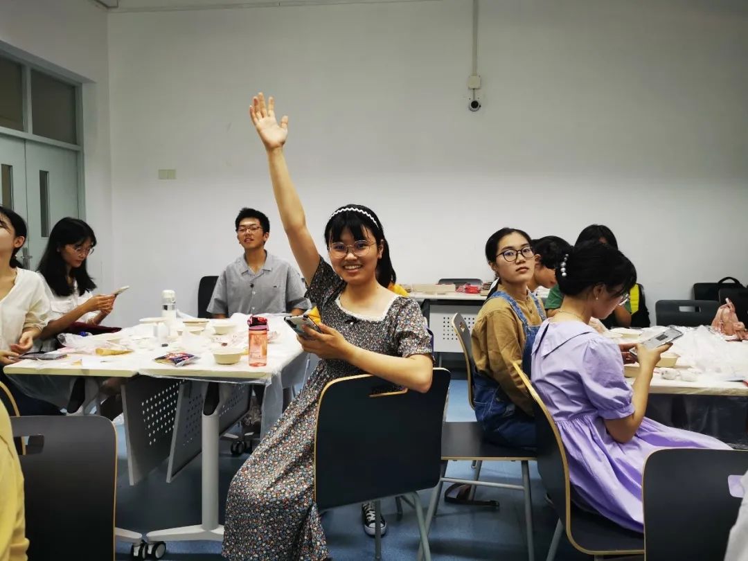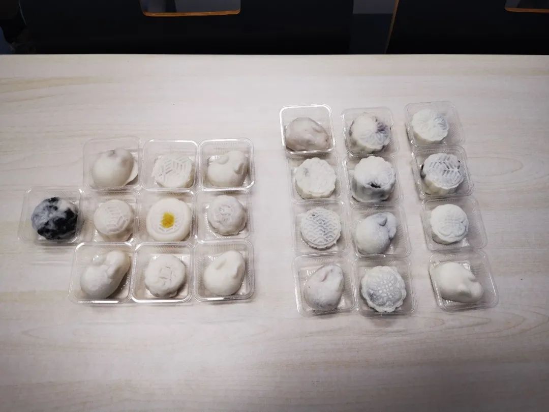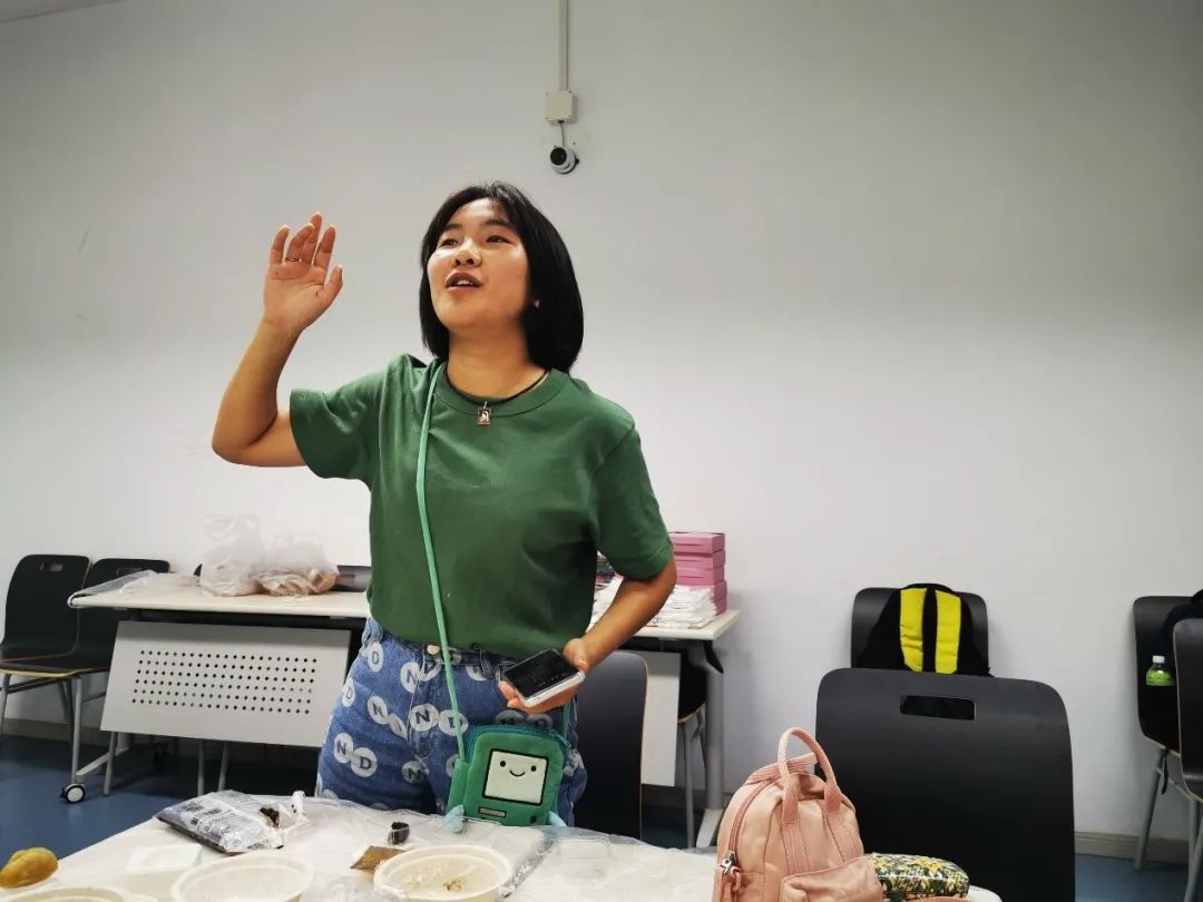 做月饼无疑是到场同学们最期待的环节,在主持人的要求下,同学们根据喜欢的月饼馅料自行分组,组成了5个队伍,按照大屏幕上的制作方法,共同制作精美的冰皮月饼。月饼模具的花色多种多样,最受欢迎的是小兔子模具,最受欢迎的馅料是豆沙和莲蓉,经过半个多小时热火朝天的制作之后,同学们相互分享自己的作品,品尝各自的“手艺”,各个队伍也纷纷展示出自己的代表作品,一比高下。