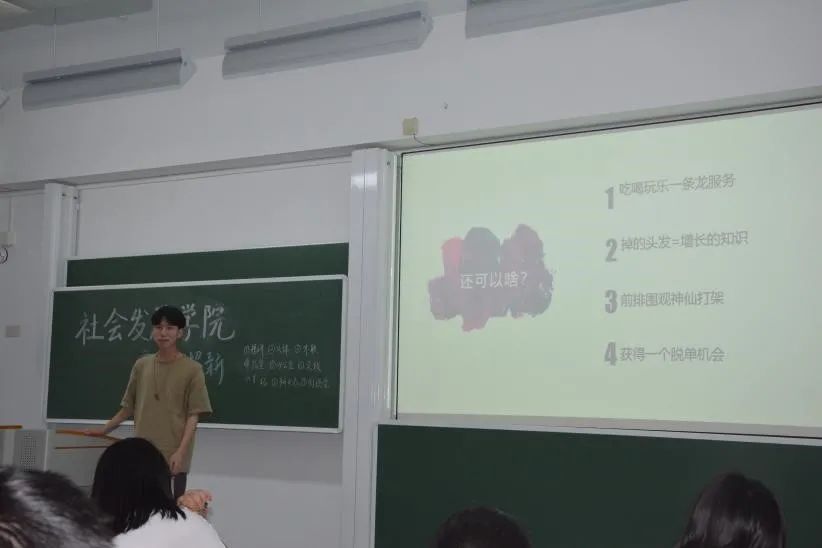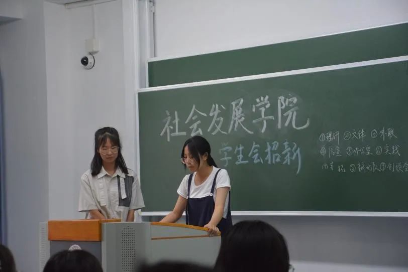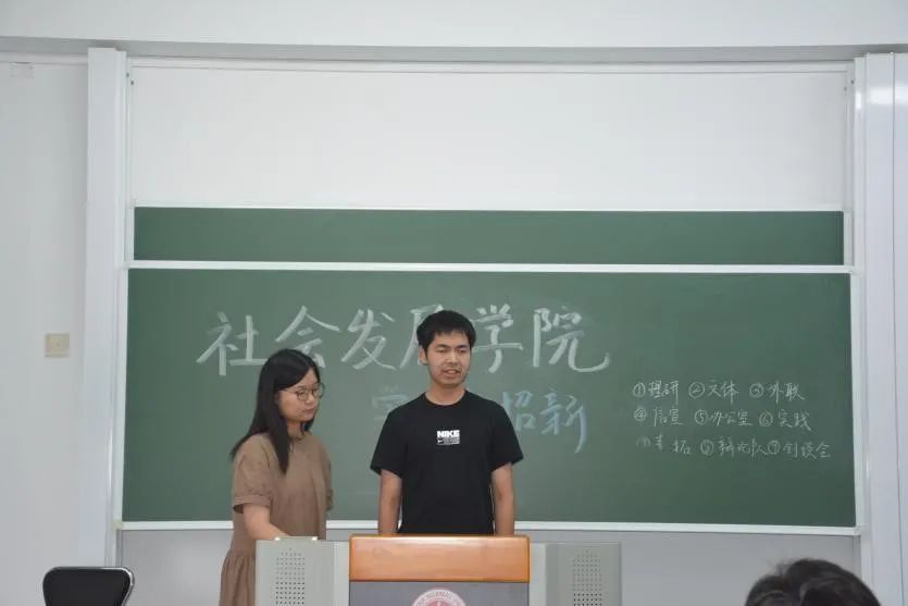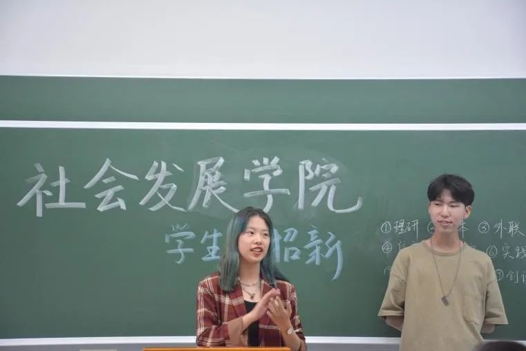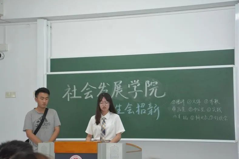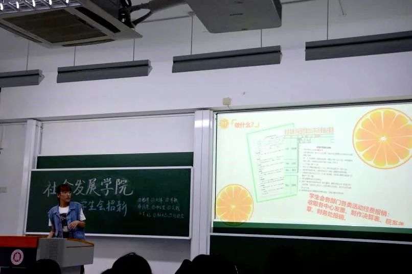 此外,各个部长还介绍了干事能够学习到的技能,表达了对干事工作能力和态度的期待。在认真的介绍中不乏幽默的打趣,呼吁新生们积极踊跃地参加到学生会来。这极大地激发了在场新生的热情,让新生们感受到,社发学生会是个其乐融融的大家庭。