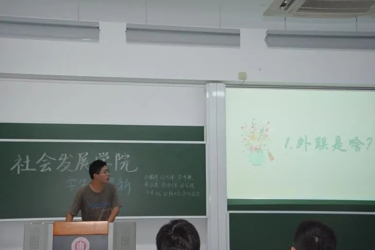 团校部部长王倩旭向同学们展示了素拓中心的各类活动,图文并茂;组织部部长蒋政强提出了组织部的设立宗旨,并强调了该部门所培养的沟通协调能力。之后,他也介绍了一些部门的日常工作。