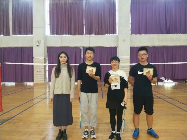 上午9:30 ,羽毛球混双比赛拉开帷幕。六组选手在比赛中见招拆招,点杀、扣球、劈吊、高远球、网前放小球,战况激烈,精彩纷呈。最终,王瞻同学和孙嘉临同学紧密协作,相互配合,灵活运用各种战术,荣膺桂冠,钱磊、陆文羽同学以微小的劣势惜败,但也在比赛中为我们展现了非凡的英姿。