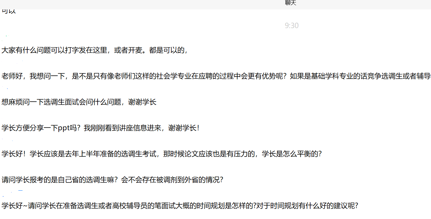 2018级社会工作专业硕士研究生廖平与2017级社会学硕士研究生艾美伶围绕选调生考试、高校辅导员求职等问题展开分享与答疑,近40名同学参加了此次活动。