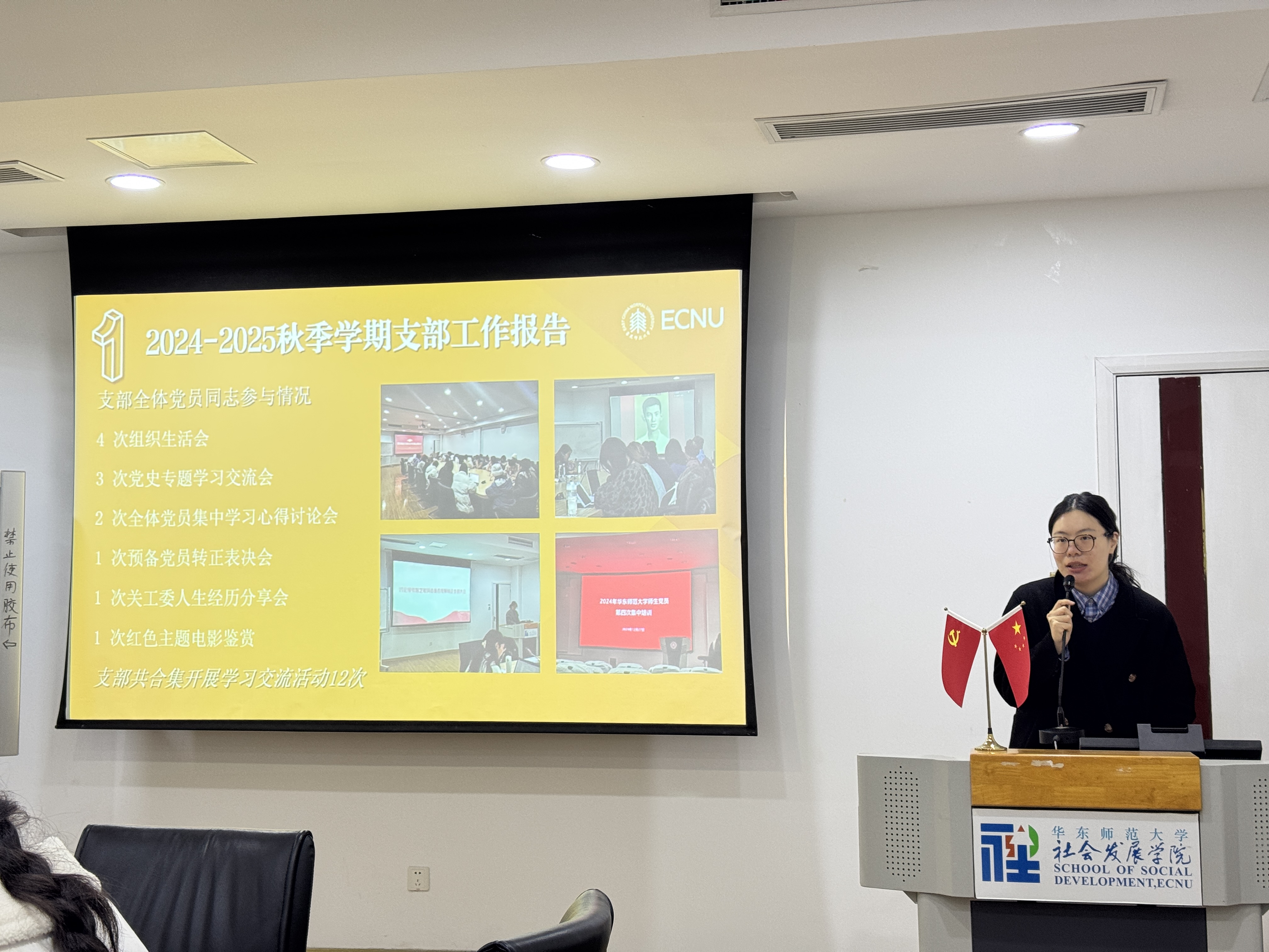 支部指导老师黄晨熹教授在点评中充分肯定过去一年的建设成果,特别是”“红色足迹探寻”等特色活动的影响力。他提出三点发展建议:一是建立常态化学习机制,借鉴校内外优秀支部经验;二是深化学生支部与教职工支部的联动与合作,挖掘银龄经济和智能手机教学合作的多元可能性;三是紧跟党与社会工作部的政策指引,努力挖掘社会工作专业服务与党建相结合的可能性