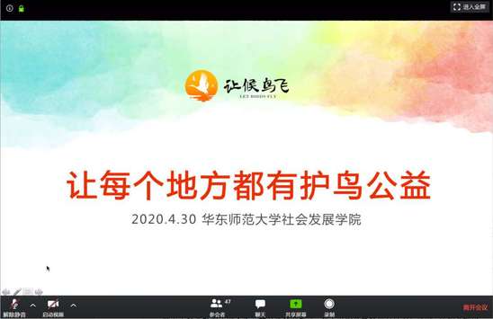 4月30日(周四)下午,爱德基金会让候鸟飞公益基金执行长刘慧莉老师做客《社会公益与创新》,与课程师生们分享公益基金项目“让候鸟飞”的故事。本次讲座通过软件ZOOM线上进行,由禁漫天堂