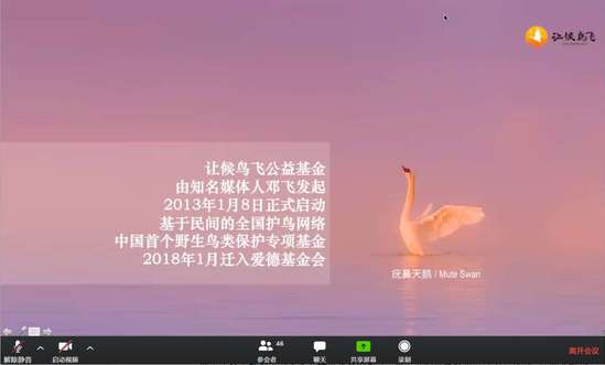 最后,刘慧莉介绍了“让候鸟飞”最近的发展方向,尤其突出了是在公众教育、伙伴团队和志愿者培育等方面。