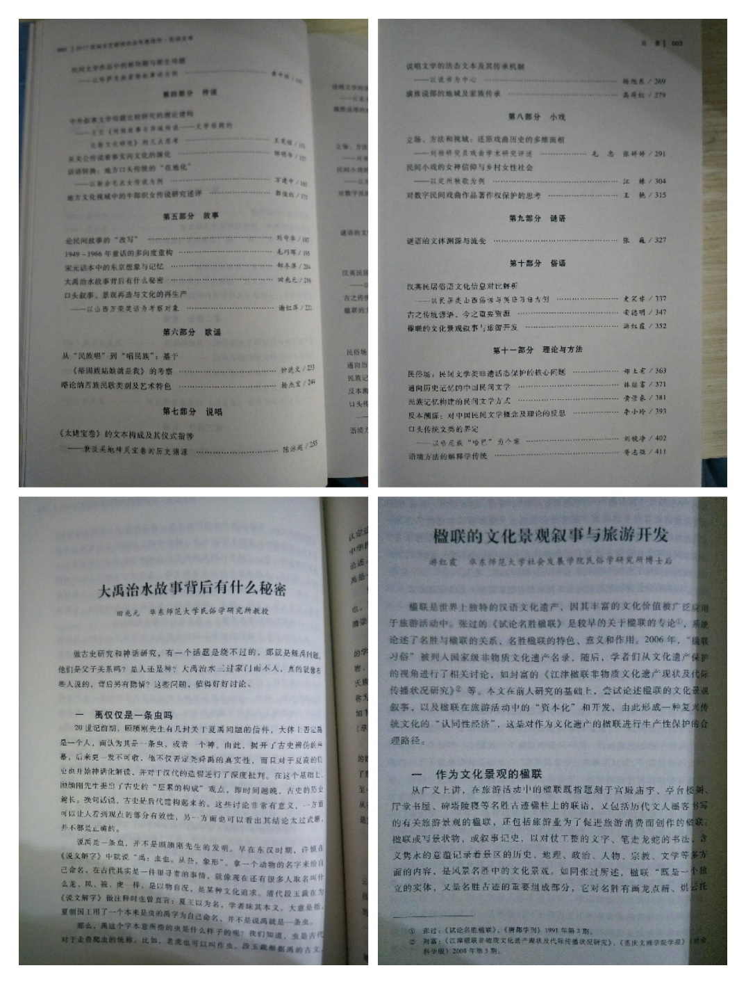 中国民间文艺家协会主编的《2017民间文艺研究论丛年选佳作·民间文学》于2019年3月由社会科学文献出版社出版发行,入选中国民间文学研究前沿成果。我院民俗学研究所田兆元教授的论文《大禹治水故事背后有什么秘密》、全职博士后游红霞的论文《楹联的文化景观叙事与旅游开发》被收录其中。田兆元教授对大禹治水故事的分析,是民间文学研究的创新性成果,同时,田兆元教授承担了上海市的“开天辟地——中华创世神话”工程重大项目,本文也是对该工程的学术贡献。游红霞的文章论述了楹联的景观叙事功能及旅游开发价值,2018年,禁漫天堂