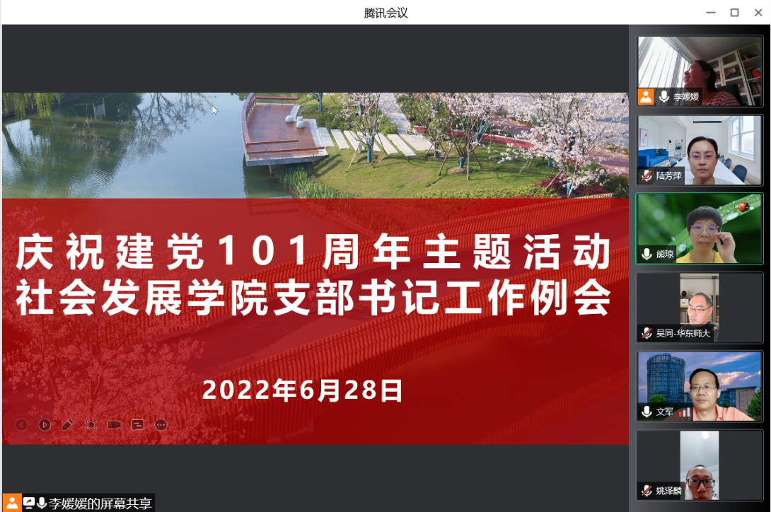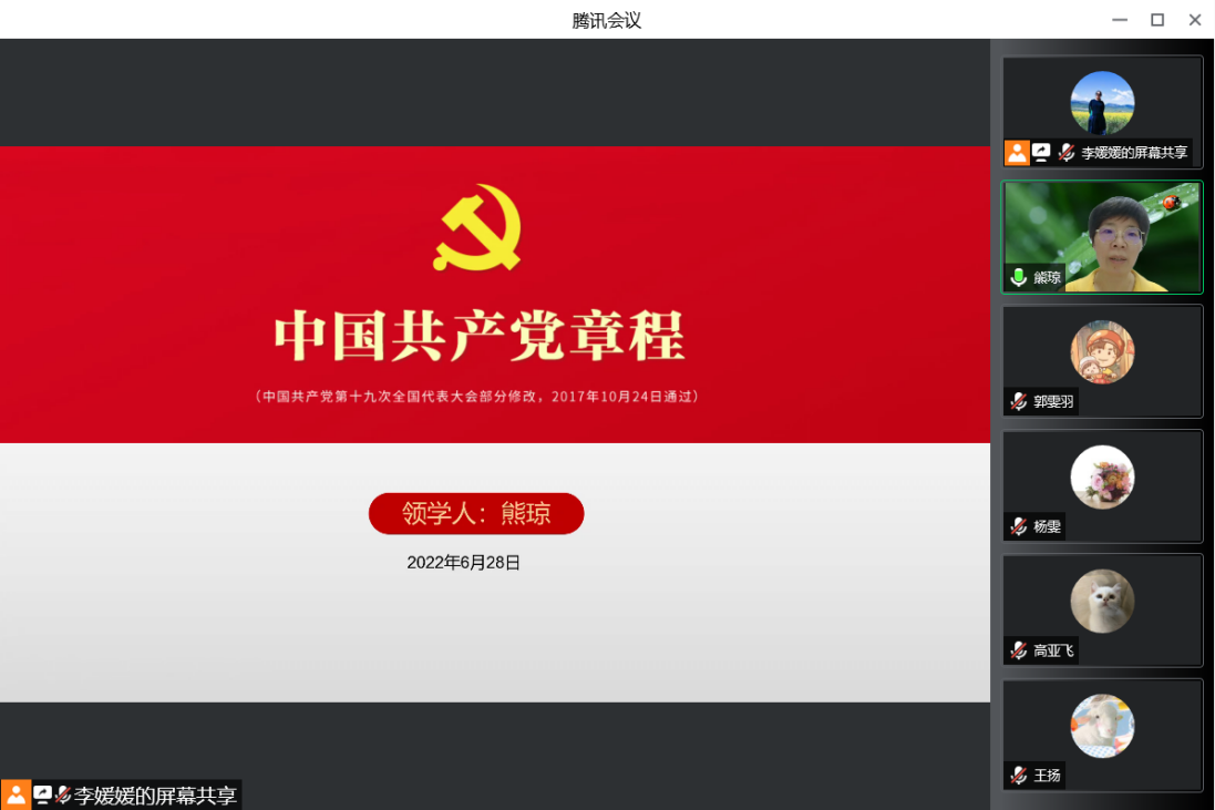 6月支部书记例会。会上,熊琼传达了学校书记例会精神,黄燕传达了学校2022年全面从严治党工作会议精神,组织员李媛媛通报了本学期常规工作开展情况。