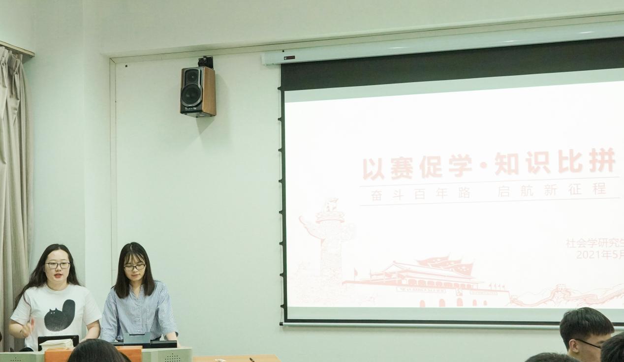 社会学研究生党支部于5月31日在法商北楼401教室开展了“奋斗百年路·启航新征程”党史知识竞赛活动。以赛促学,激发支部成员对党史、校史和学科发展史的学习兴趣和热情,将党史学习教育与学科史融会贯通,让支部党员在学习中感悟共产党员的初心,在实践中践行青年学子的使命。本次竞赛由支部党员、入党积极分子共同组织参加,支部党员佘青原和李悦担任主持。