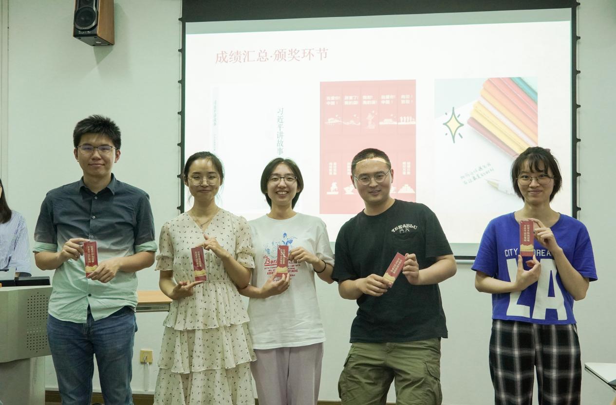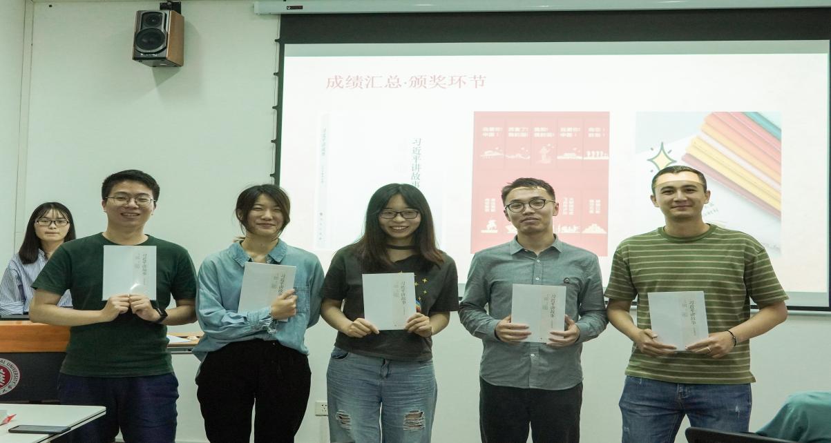 随后,知识竞赛正式开始。首先,主持人为大家讲解了比赛规则。本次竞赛包含必答题和抢答题两大板块,内容包括了党史、校史和社会学史三个模块,题型涵盖单选、多选、判断、简答等题目。比赛过程十分精彩,支部成员们准备充分。前两个回合的必答题中,无一人失误,每人答题时该小组的队友都屏住了呼吸,局势非常胶着。在抢答题板块,2019级的乏如克·哈帕尔同志表现出了非常高的积极性,凭借自身丰富的知识储备和快速的反应能力,帮助其所在的小组连续得分,快速拉大了比分优势;同时,其他小组也不甘示弱,纷纷在自己擅长的领域积极抢分,以追回差距。通过精彩的知识比拼,各位党员收获了知识,也决出了一二三等奖的获奖小组。随后,支部书记陈颖同志宣布了比赛结果,并在热烈的掌声中为各个小组颁奖,合影留念。