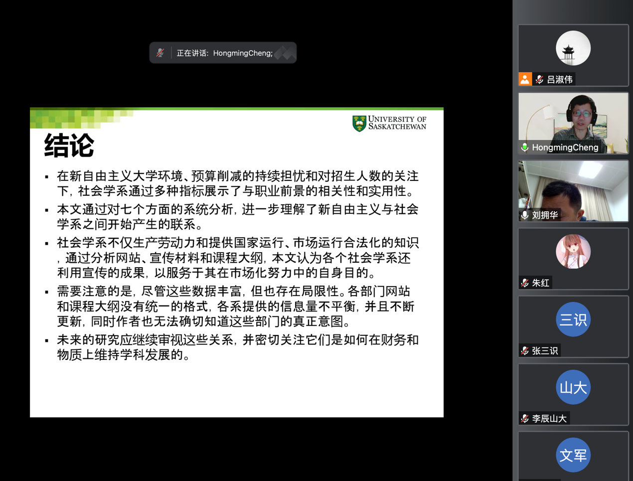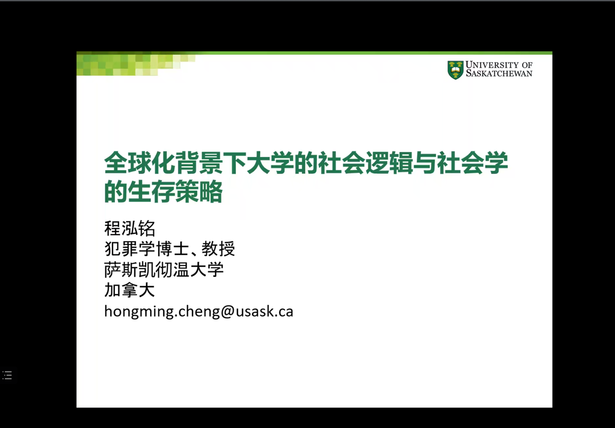 2023年11月8号,加拿大萨斯凯彻温大学社会学系程泓铭教授应禁漫天堂