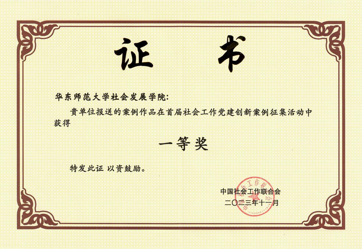本科生党支部申报的浦江镇苏民村“社区智理师”项目《情感治理激发农村基层自治活力——上海市闵行区浦江镇苏民村探索党建引领下基层治理的常态长效机制》,在本次评选活动中脱颖而出,荣获全国首届社会工作党建创新案例一等奖。