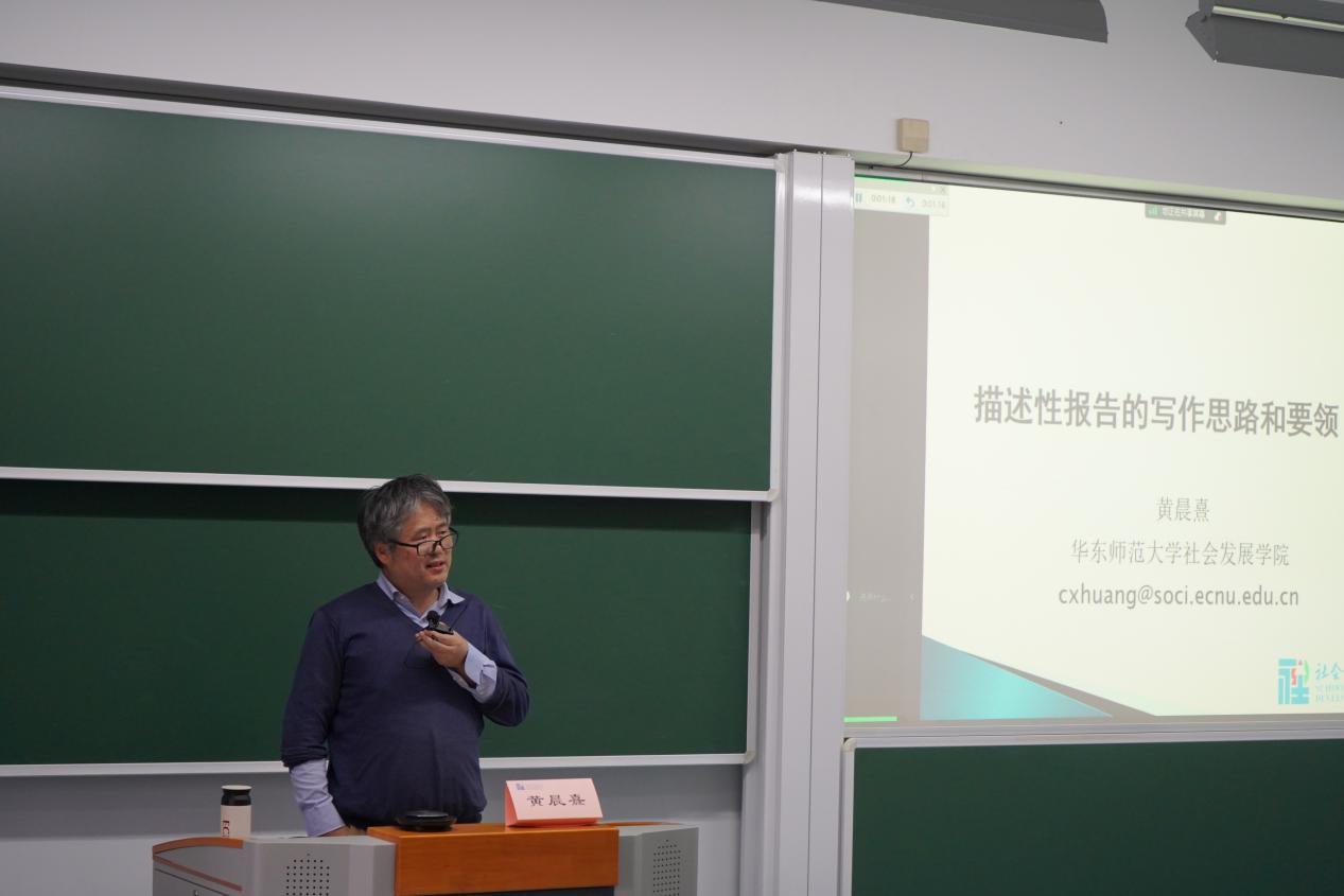 黄晨熹教授从实用性的角度,分享了如何写作一篇清晰、精准的描述性报告,为学生们构建更具说服力和可读性的学术报告提供指导。内容涉及了数据处理、降维压缩、描述性分析等报告写作前的准备工作,并回应了同学们在处理SPSS输出的描述性表格时可能遇到的问题。针对描述性报告的具体写作,黄老师强调紧贴主线、呈现亮点、合并内容同类项等写作要点,并强调了站在读者的角度考虑问题的必要性,提醒在座学子杜绝按图索骥、照本宣科的机械式分析,避免流水账式的枯燥叙述。黄晨熹老师针对量性研究做了非常深入的指导,在场的学生表示十分受益,都认真记录和紧跟着老师的思路思考。