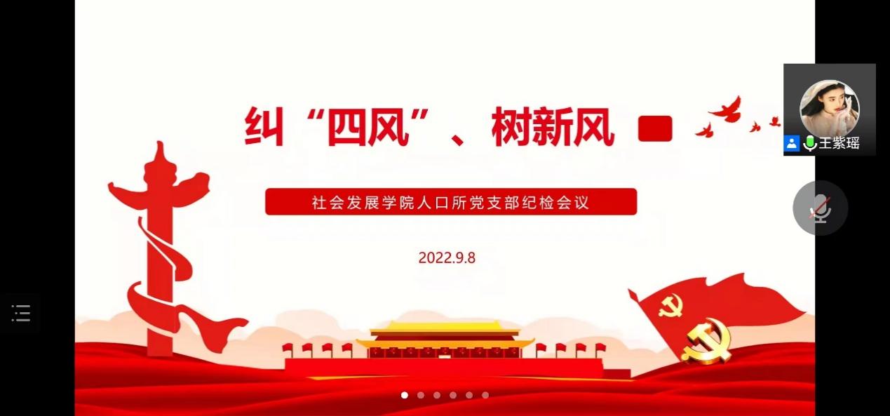 进一步加强支部作风建设、营造风清气正的支部氛围,根据中央纪委国家监委驻教育部纪检监察组、上海市纪委监委、学校纪委的工作要求,人口所硕士研究生党支部于98召开“纠四风、树新风”专题学习会,传达学校相关通知精神,会议由支部书记张帆主持、纪检委员王紫瑶同志主