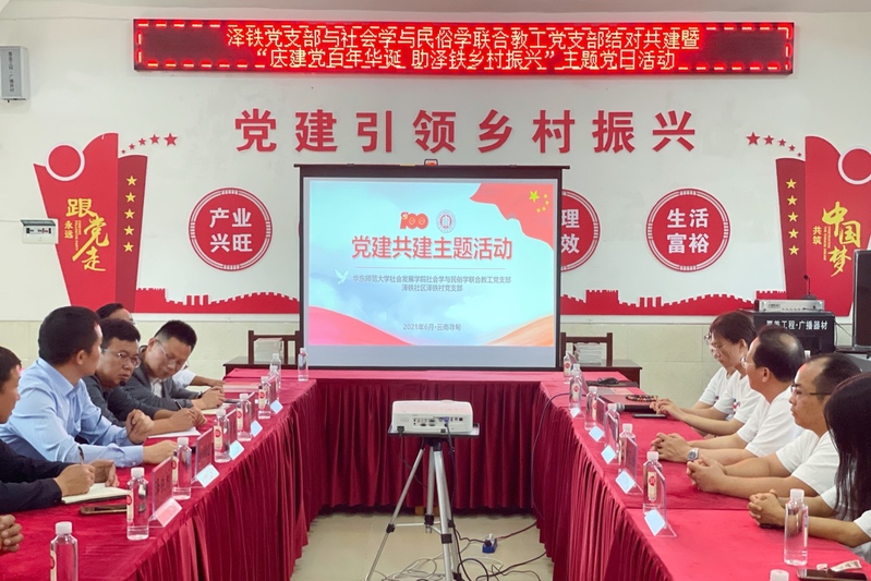 的博士生、硕士生9人来到云南省寻甸回族彝族自治县开展党建共建和学术调研活动。6月28日上午,文军教授团队一行人来到寻甸县金所街道苗族村落泽铁村,与泽铁村党支部进行结对共建,并开展了“迎建党百年华诞,助寻甸乡村振兴”主题党日活动。