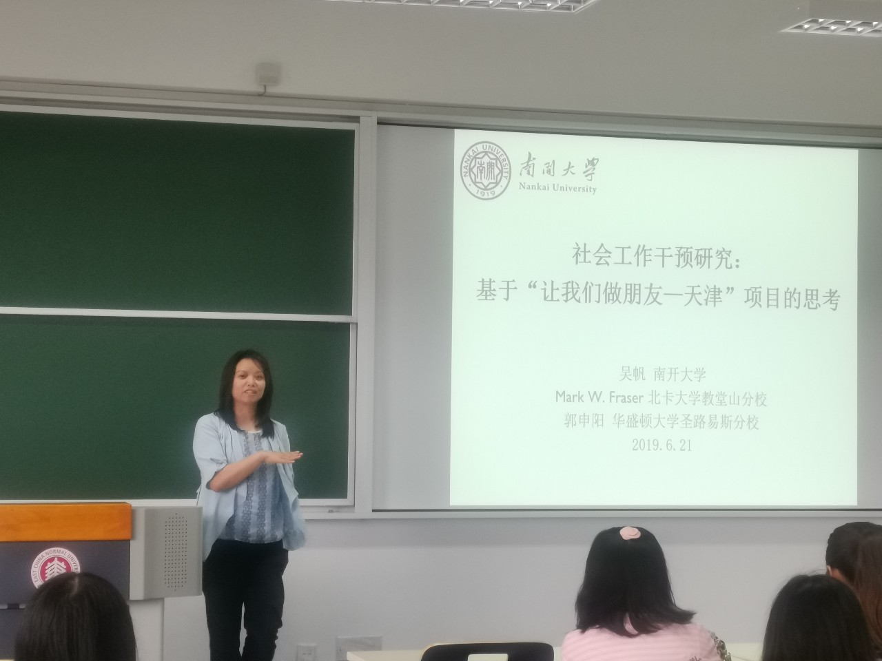 2019年6月21日星期五下午,百场校级学术讲座第78场在闵行校区第一教学楼304教室举办,特邀专家为南开大学社会工作与社会政策系吴帆教授,她以《社会工作干预研究》为题,介绍了如何开展一项社会工作干预研究,讲座由禁漫天堂