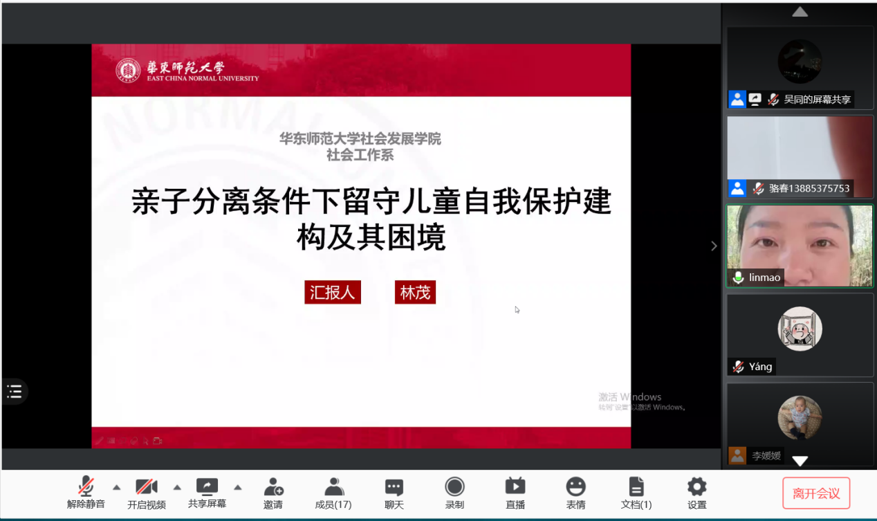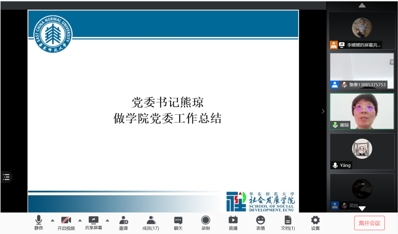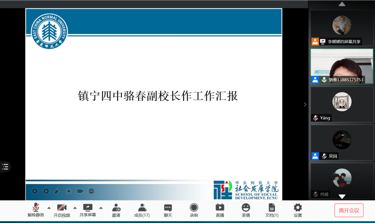副院长黄晨熹、社会工作系和人口学研究所联合教工党支部党员、镇宁四中教师代表共17位老师在线参会。会议由禁漫天堂