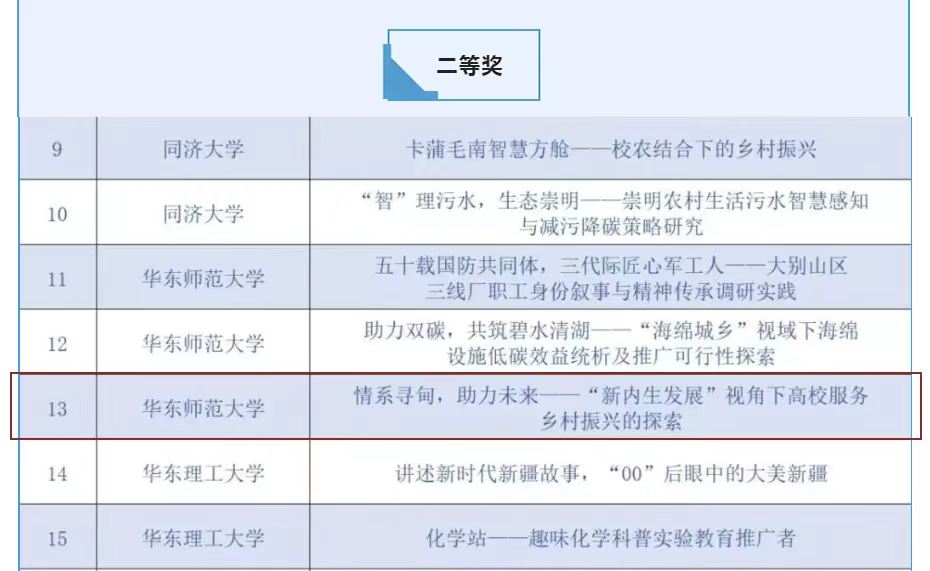 其中《情系寻甸 助力未来——“新内生发展”视角下高校服务乡村振兴的探索》项目参与2022年“知行杯”上海市大学生社会实践大赛,荣获二等奖。