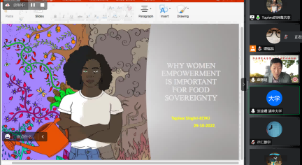 博士研究生Tapiwa以《Why Women Empowerment Is Important For Food Sovereignty》为题,通过分析妇女获得粮食和在与粮食生产和消费有关的决策中发挥的重要作用,指出赋予妇女权力将大大有利于将粮食视为一项人权。禁漫天堂