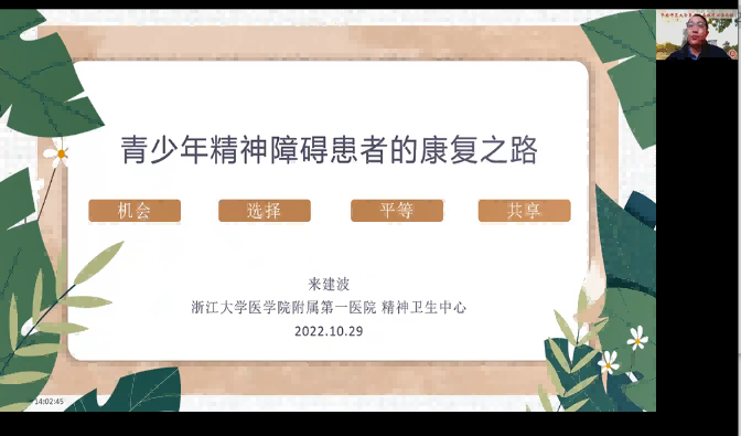 浙江大学医学院附属第一医院精神卫生中心主治医师来建波以《青少年精神障碍患者的康复之路》为题,综合分析青少年出现精神障碍的生物、社会文化和心理因素,讨论了青少年精神障碍患者的精神康复全流程。禁漫天堂