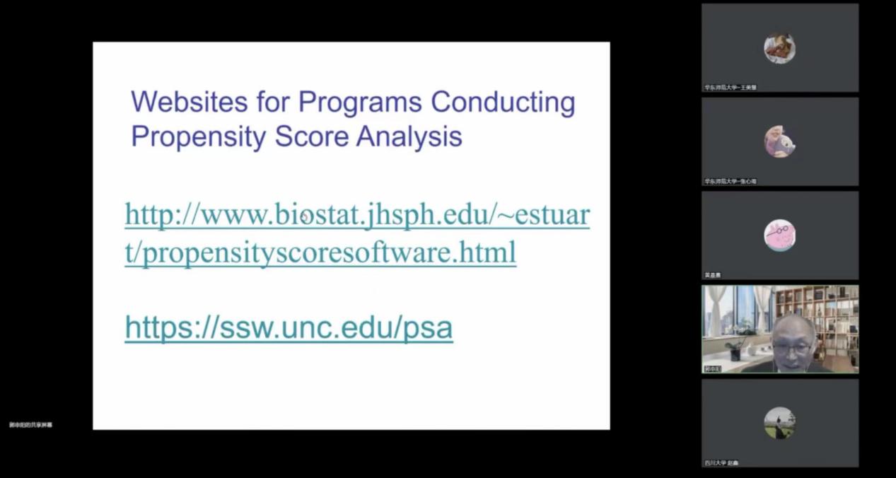讲座开始之前,黄晨熹老师对前来参加此次讲座的师生表示热烈欢迎。同时为大家介绍了本次进行分享的主讲人郭申阳教授。郭申阳教授是“美国社会工作和社会福利科学院”院士(2014年入选),2021年全美社会工作研究学会副主席。担任美国 Sage 出版社“Advanced Quantitative Techniques in the Social Sciences Series”系列主编,2021年被美国 PLOS Biology 评选为全球前2%科学家之一。希望同学们能够在有限时间里与郭老师进行积极交流,在研究方法方面积累更多的专业知识和技巧。