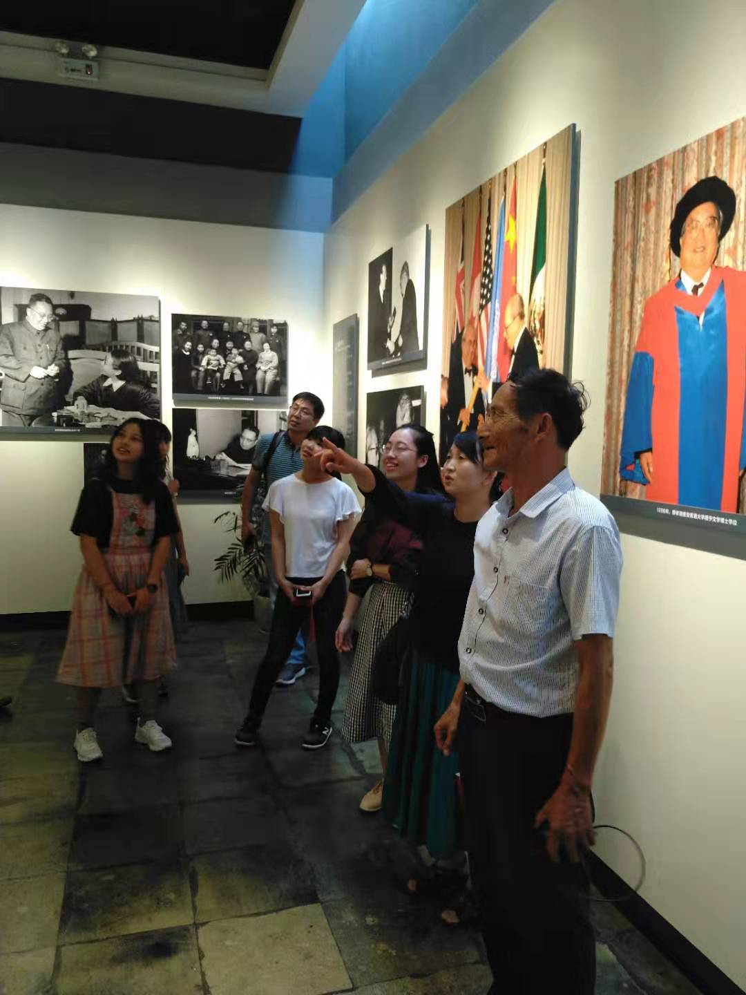 9月7日中午,中日师生乘车来到开弦弓村。开弦弓村又名江村,是久负盛名中国社会学圣地,也是费孝通先生的著作《江村经济》的田野调查所在地。在姚富坤老先生的带领和介绍下,中日师生参观了“江村历史文化陈列馆”和“费孝通江村纪念馆”,了解了费孝通的家庭背景、学术经历和国际享誉。姚先生还特别提及了费孝通在日本访问、与时任日本首相会面等经历。
