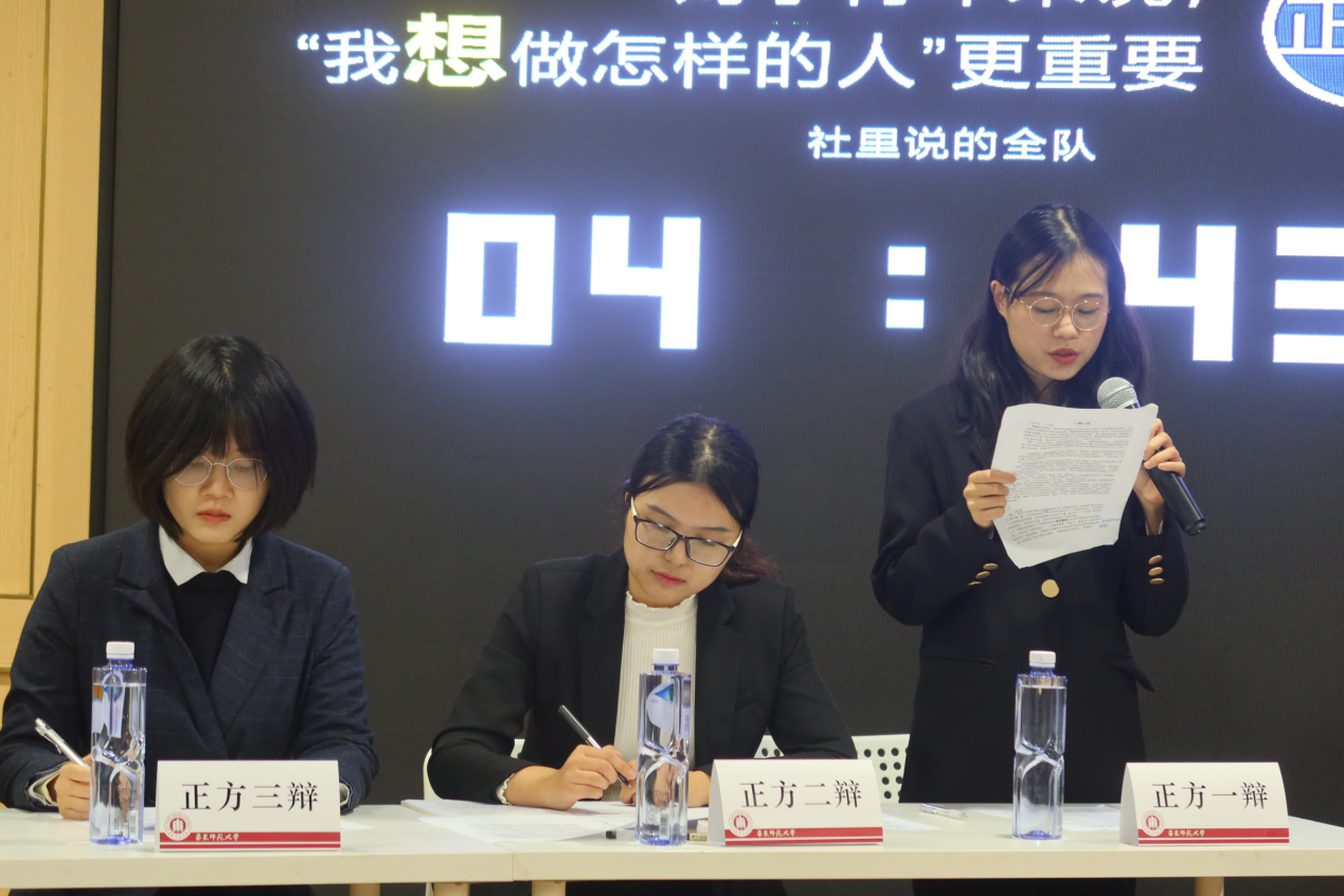 我院持正方观点,与对方辩论队展开激烈辩论。
