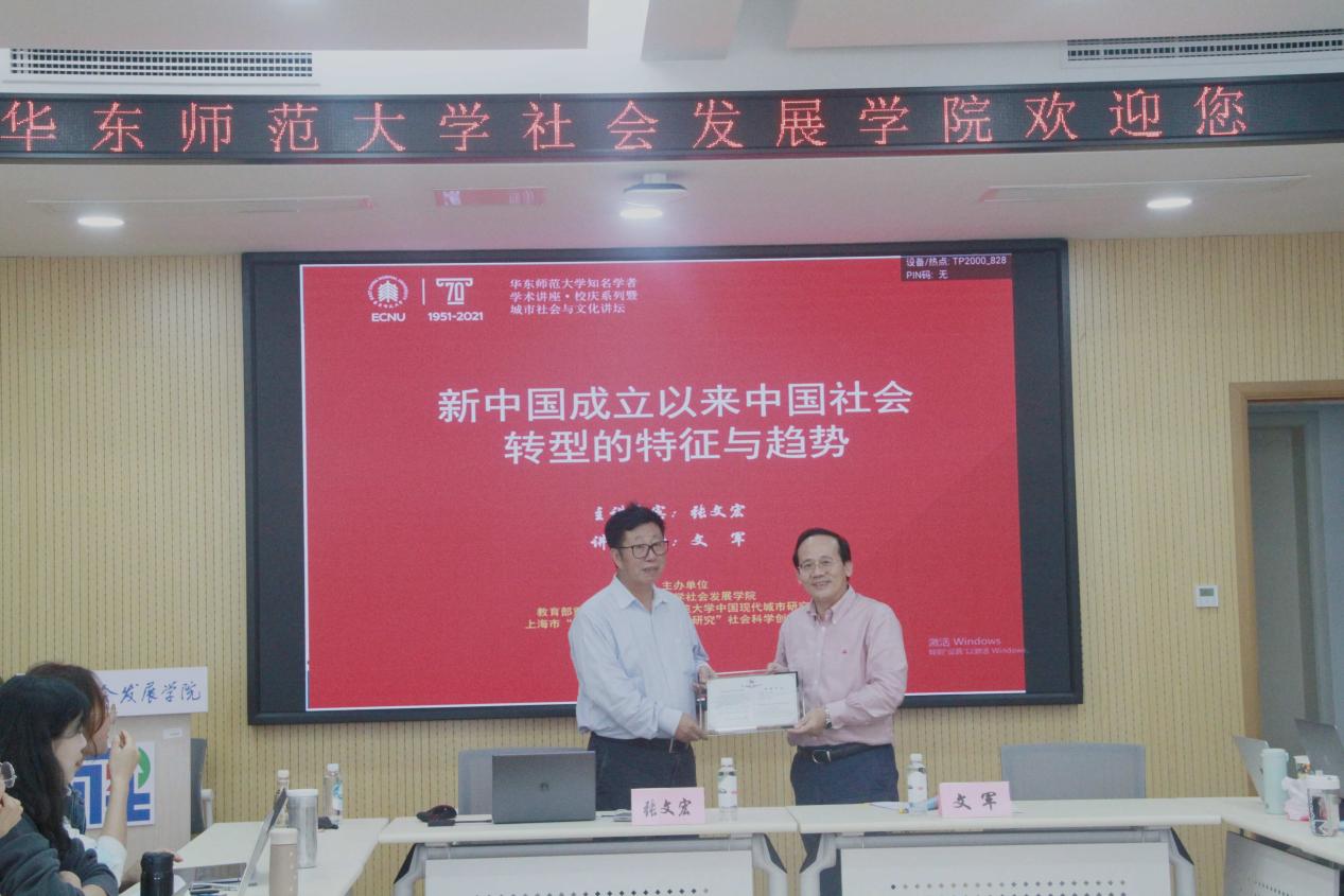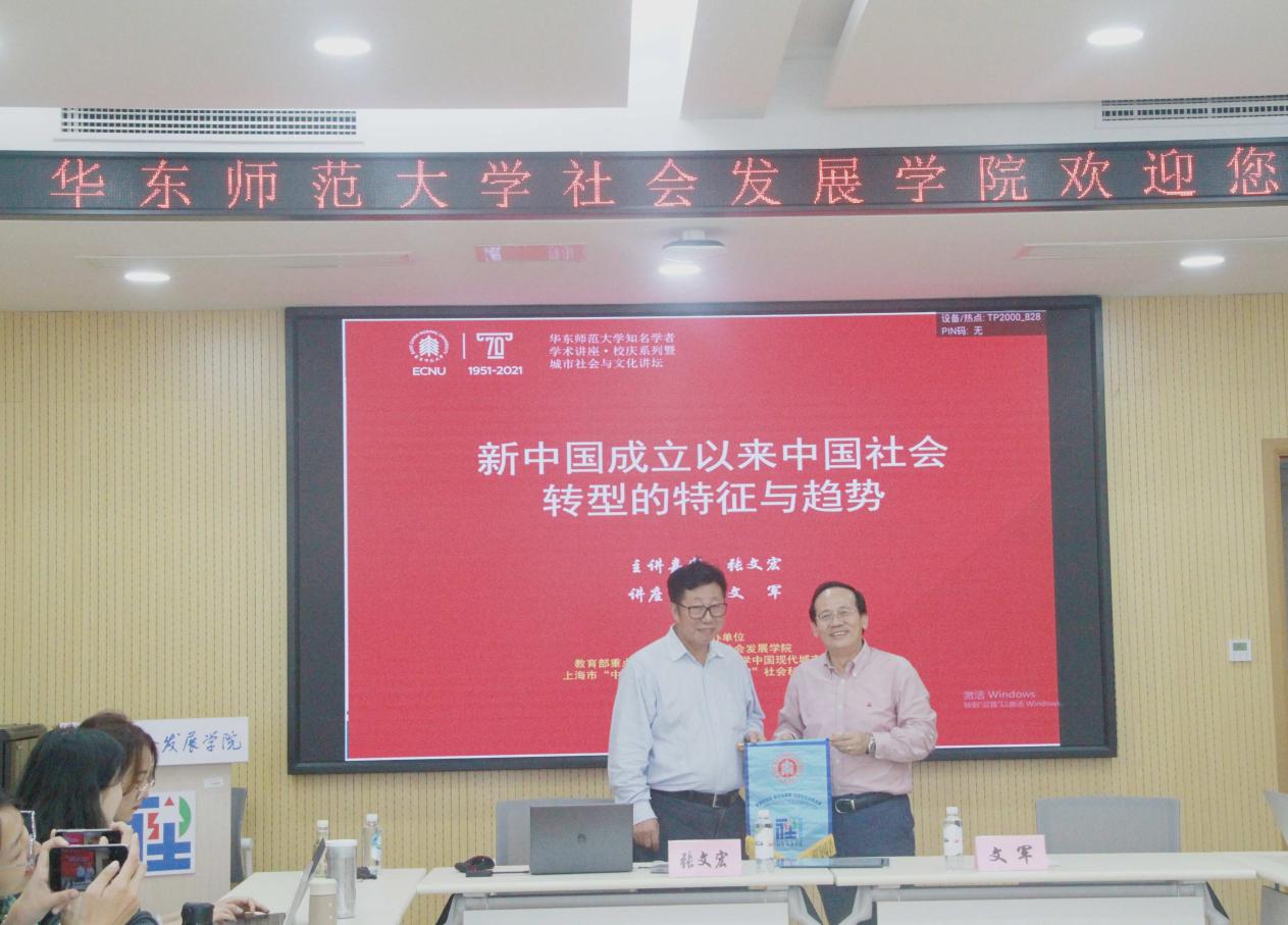 最后,张文宏教授的讲座在师生的热烈掌声中圆满结束。文军教授表示,在近两小时的讲座中,张文宏教授用简洁明了的语言、充足详实的数据资料,完备、详实地向大家阐述了新中国成立以来中国社会转型的特征与趋势,师生们受益匪浅,感谢张文宏教授为我院师生带来的高质量讲座,为我校七十周年校庆和学院城市社会与文化讲坛增添光彩。