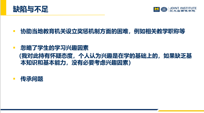 上海交通大学密西根学院支教团的刘祖衡向我们分享了基础教育薄弱地区的小学英语教学的实践心得。在这些地区,小学英语教学中存在的普遍问题是师资力量匮乏、系统教学体系缺失、教师教学意愿偏低。同时,山区的整体观念导致当地人对英语学习不重视,更增加了英语教学的难度。此外,支教本身又存在着延续机制缺乏的问题。