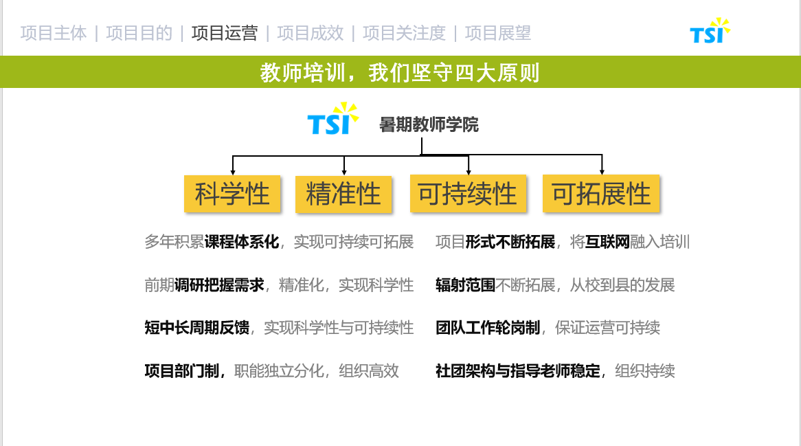种太阳团队强大而专业的课程体系设计师确保了课程设计的专业性与有效性。项目以营地教育和体验式学习为理念,以“工作坊+导师陪伴+小组学习+游戏/挑战+每日反思”模式开展,建立情感联结、点燃未来想象力、在创造过程中帮助营员建立自我认知。另外,严格的导师培训和淘汰体制、企业化矩阵式人员管理、第三方项目评估专员长期跟评等方式也使得项目得到不断优化。孩子们在种太阳项目的陪伴下,提升了学习兴趣,涵养了自信开朗的性格,也丰富了对未来的想象。