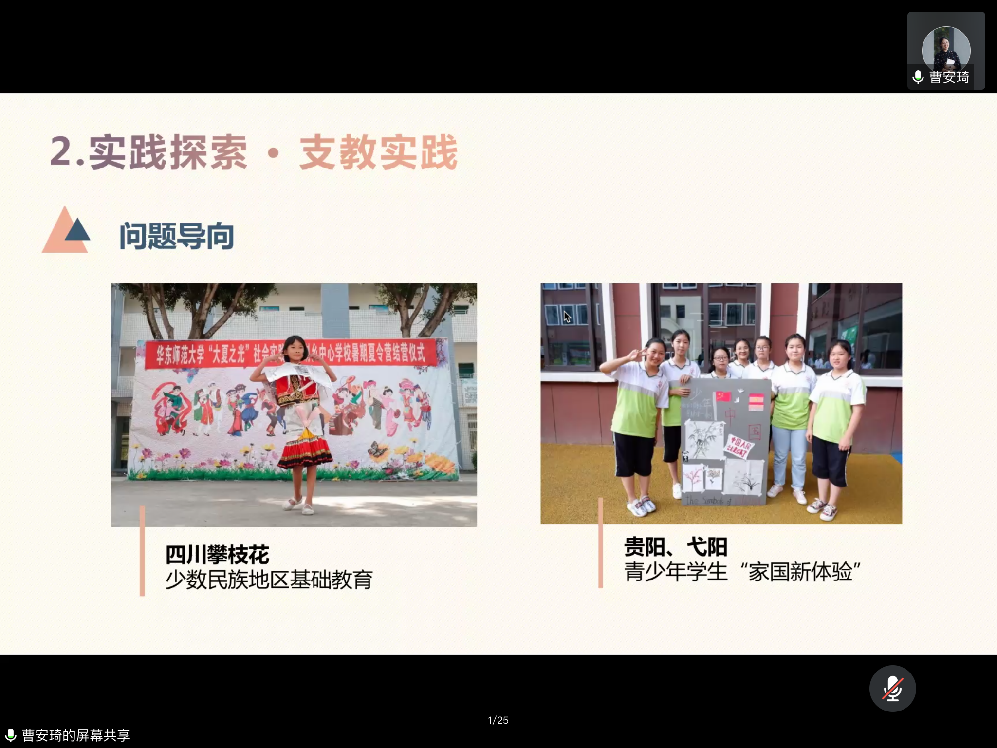 另外,书院在支教中注重家校共育,以家长座谈会、专题讲座和面访家长的形式深入了解孩子和所在家庭的情况。2020年5月,书院成立了“紫夏公益社”,集结有公益情怀的学生,帮助大家了解公益,学会做公益,成为有实践能力和创新精神的公益性人才,做未来的公益事业的领导者。最后,曹安琦老师讲到,书院公益项目将朝着整合化、延续性、精细化、引领性等方向发展,更好推动大学生的公益心与知行路相结合。