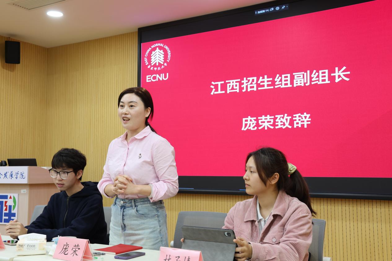 座谈会伊始,江西招生组副组长庞荣首先对各位江西籍新生的到来表示了热烈欢迎,并介绍了2024年江西招生组的整体工作情况,与新生共同交流回忆了在江西南昌的招生宣传活动。她对江西籍新生们寄予殷切期望,并鼓励同学们借此座谈会多多交流,共同学习进步。同时,她希望同学们关注接下来的“寒假母校行”活动,积极参与江西招生宣传工作。