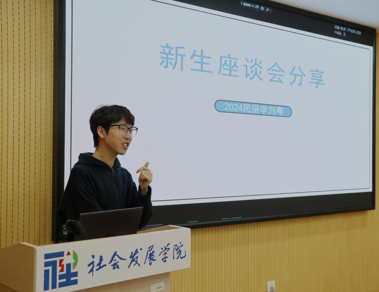 民俗学专业硕士研究生刘粤同学为学弟学妹们进行了精彩的经验分享,鼓励同学们明确奋斗目标,着重提升专业知识,积极参与科研实践,打好扎实的专业基础,适当参与学生工作,积累在校经验的同时也丰富自己的校园生活。他希望同学们能够在大学四年里了解自己想要成为什么样的人,并为着自己的人生目标而努力奋斗。